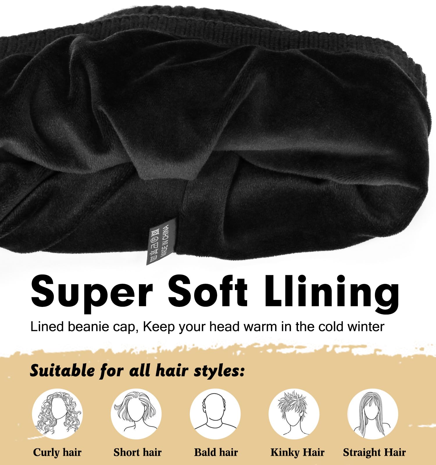 Premium Warm Beanie: Mens warm winter hat is made of high quality stretchy polyester fabric and soft-spun knitted. No shedding extremely comfortable soft and lightweight, holds shape and color after washing, for keep you warm in extremely cold winter days. The knit beanie skull cap is fleece lined that protects you from strong winds and itching