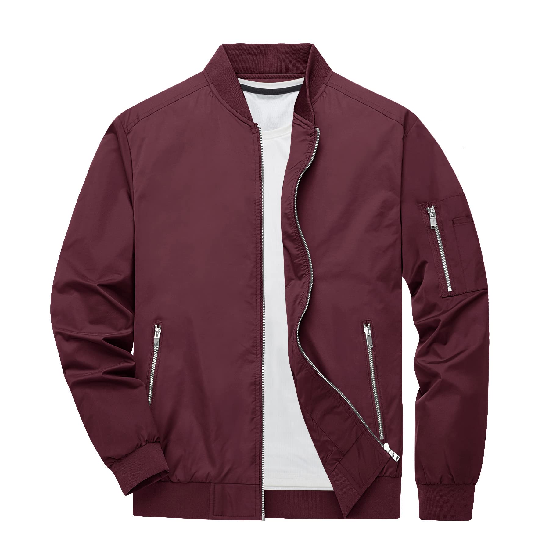 MULTI-POCKETS: 1 zipper sleeve pocket, 2 zipper slant hand pochets, 1 inner pocket