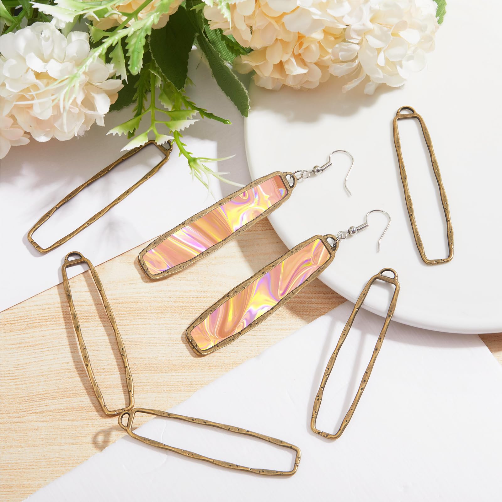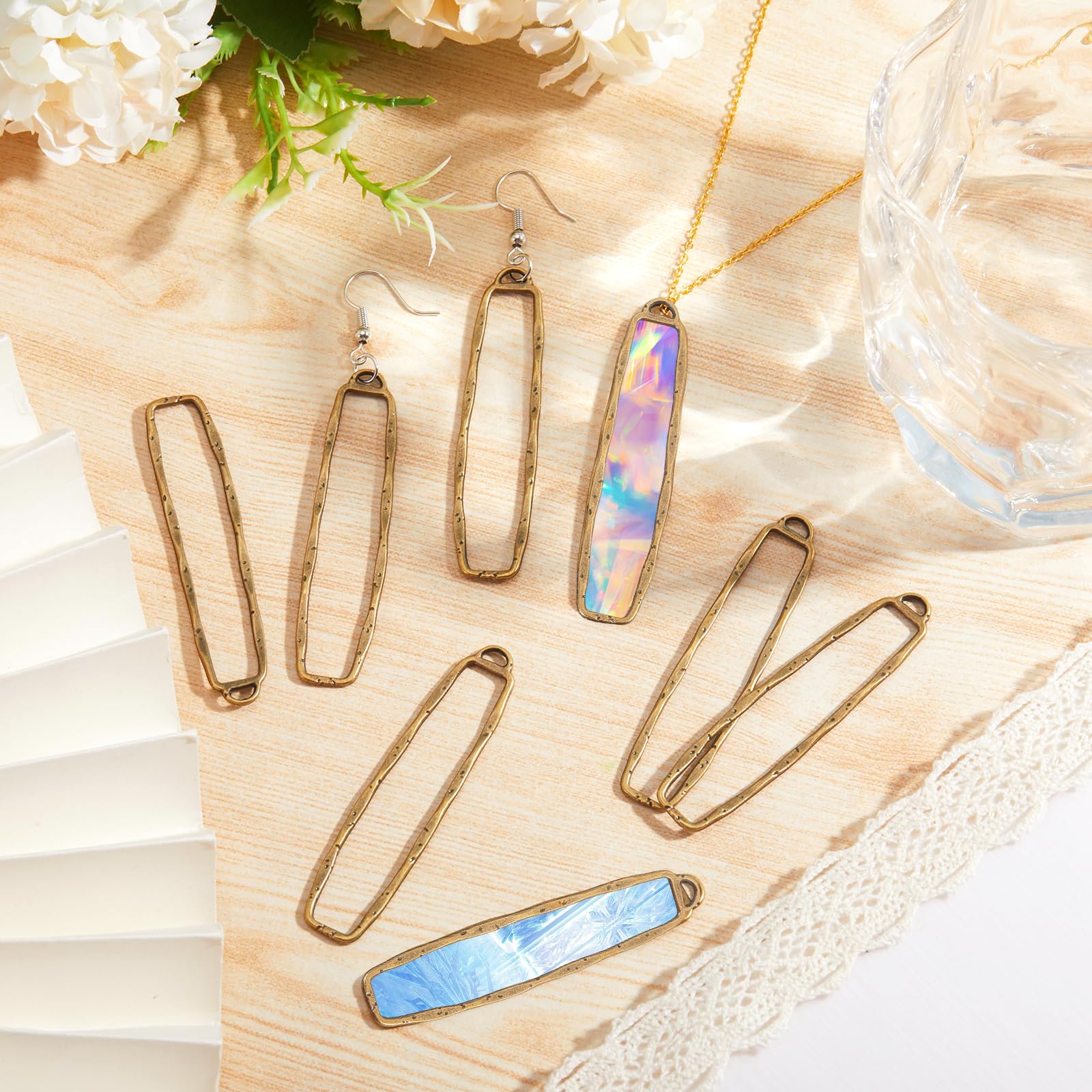 Easy to Use: Each alloy rectangle alloy open bezel pendant has a loop on it that is easy to slip through. Use these pendant trays filled with epoxy, sequins, rhinestones, and dry-pressed flowers to make resin pendant charms