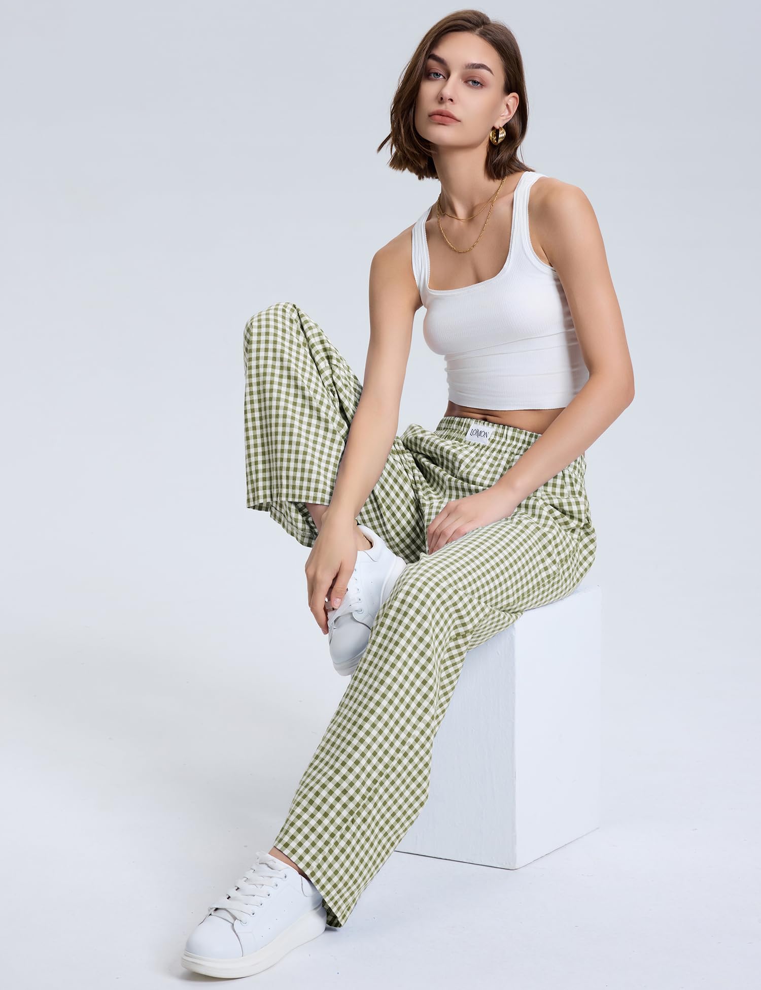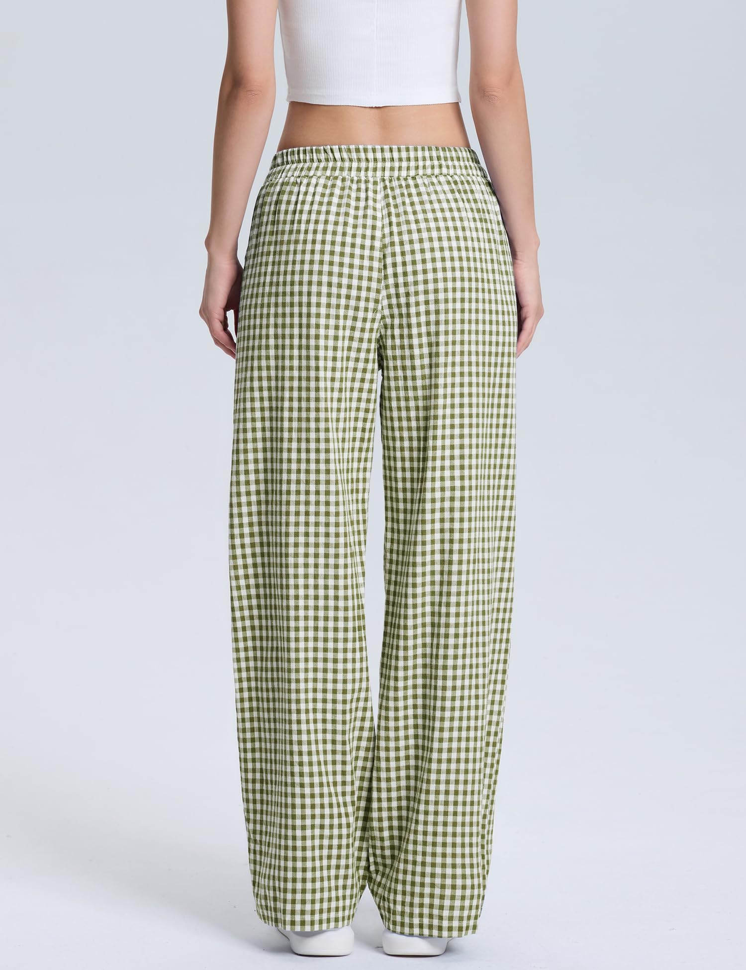 These gingham/ striped pants aren't just about comfort, they're also incredibly versatile. You can wear them as pajama bottoms or for lounging around the house or vacation rentals. They are also perfect for weekends at the park or beach, offering a stylish and comfortable option for any occasion