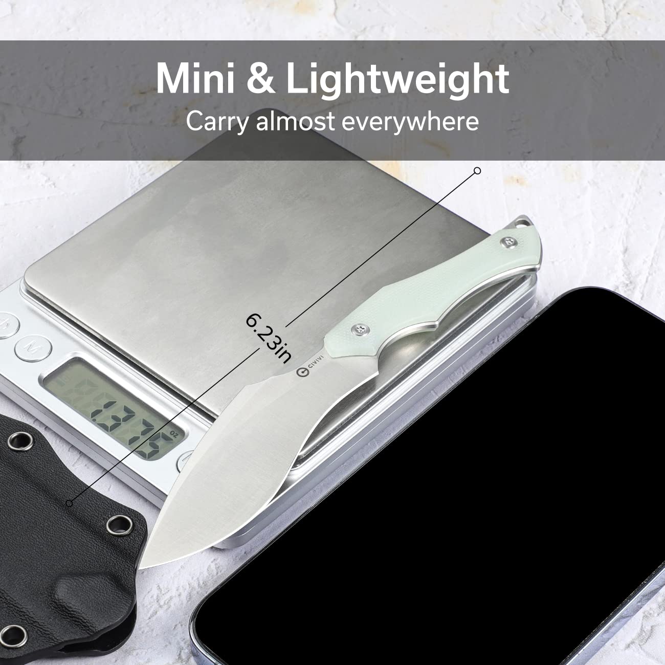 Mini & Lightweight --- This fixed blade knife is mini-sized and lightweight, making it ideal for carrying almost everywhere. It includes a Kydex sheath and a chain for around-the-neck carry.