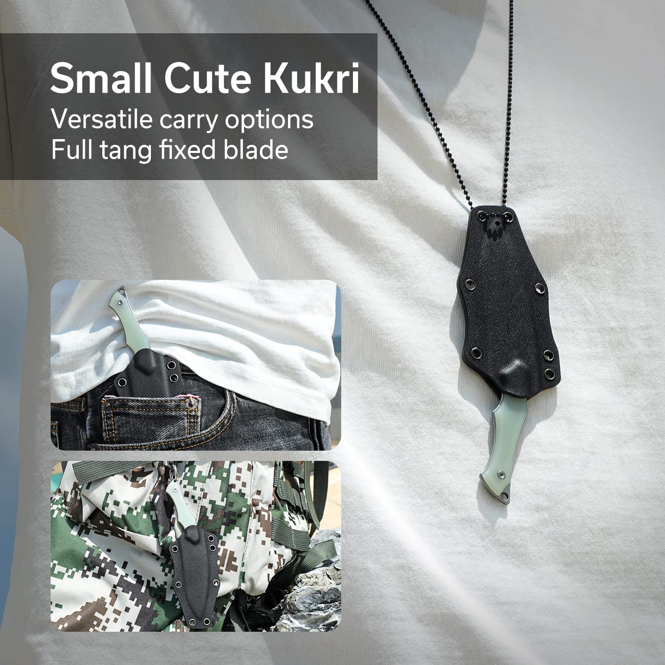 Cute Mini Kukri --- This full tang fixed blade knife features a cute and compact mini Kukri design, offering versatile carry options that fit your needs perfectly.