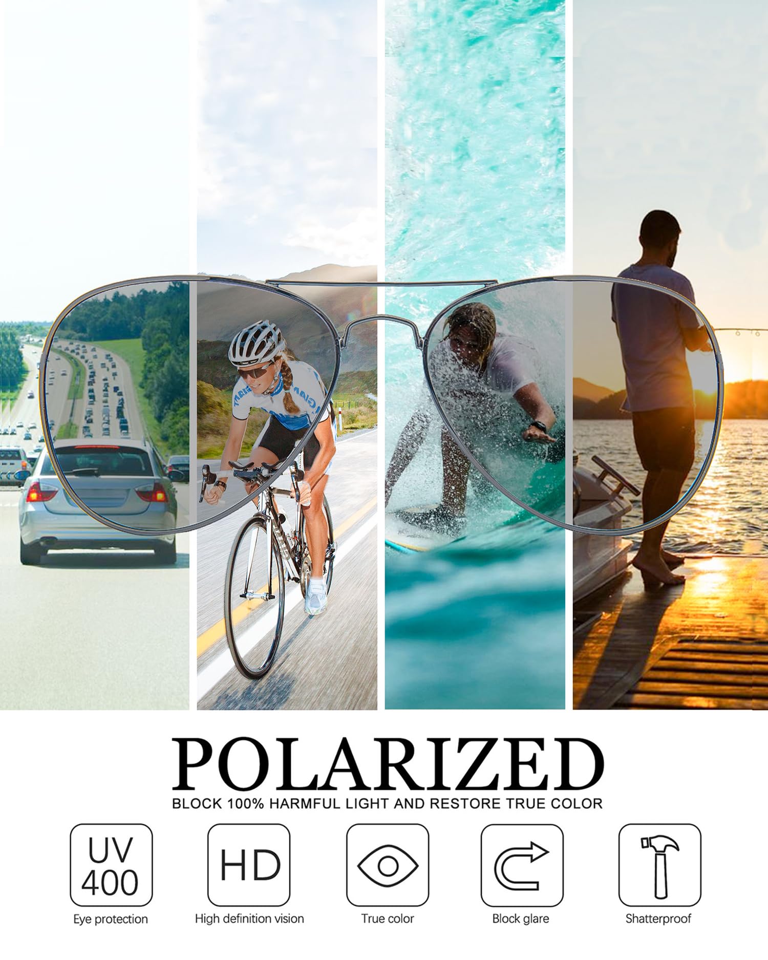 HD UV400 POLARIZED TAC LENSES: Effectively protecting eyes by blocking 99.99% harmful UVA & UVB rays, providing you with a high definition visual experience