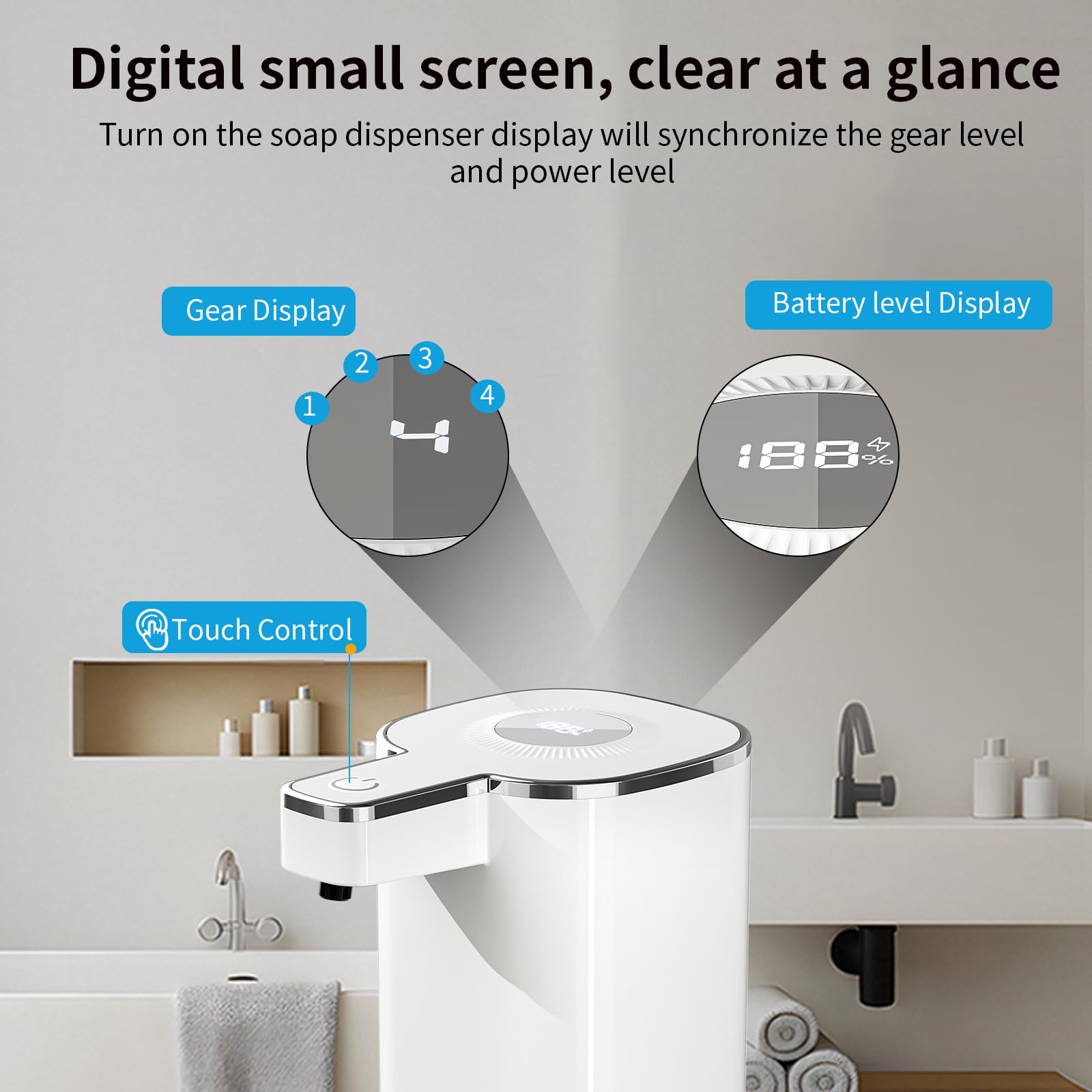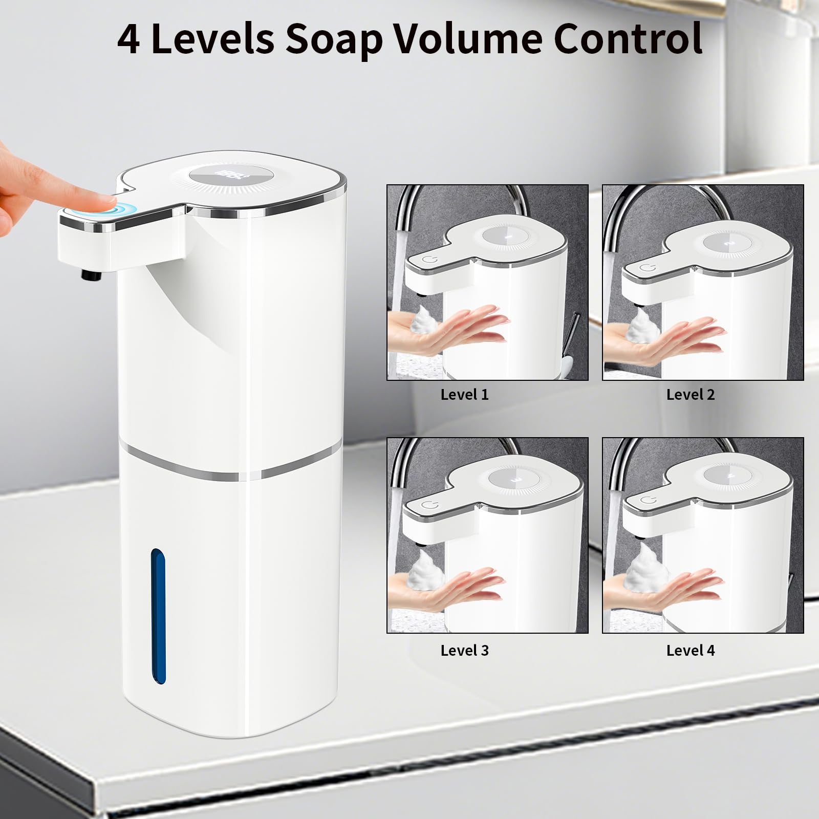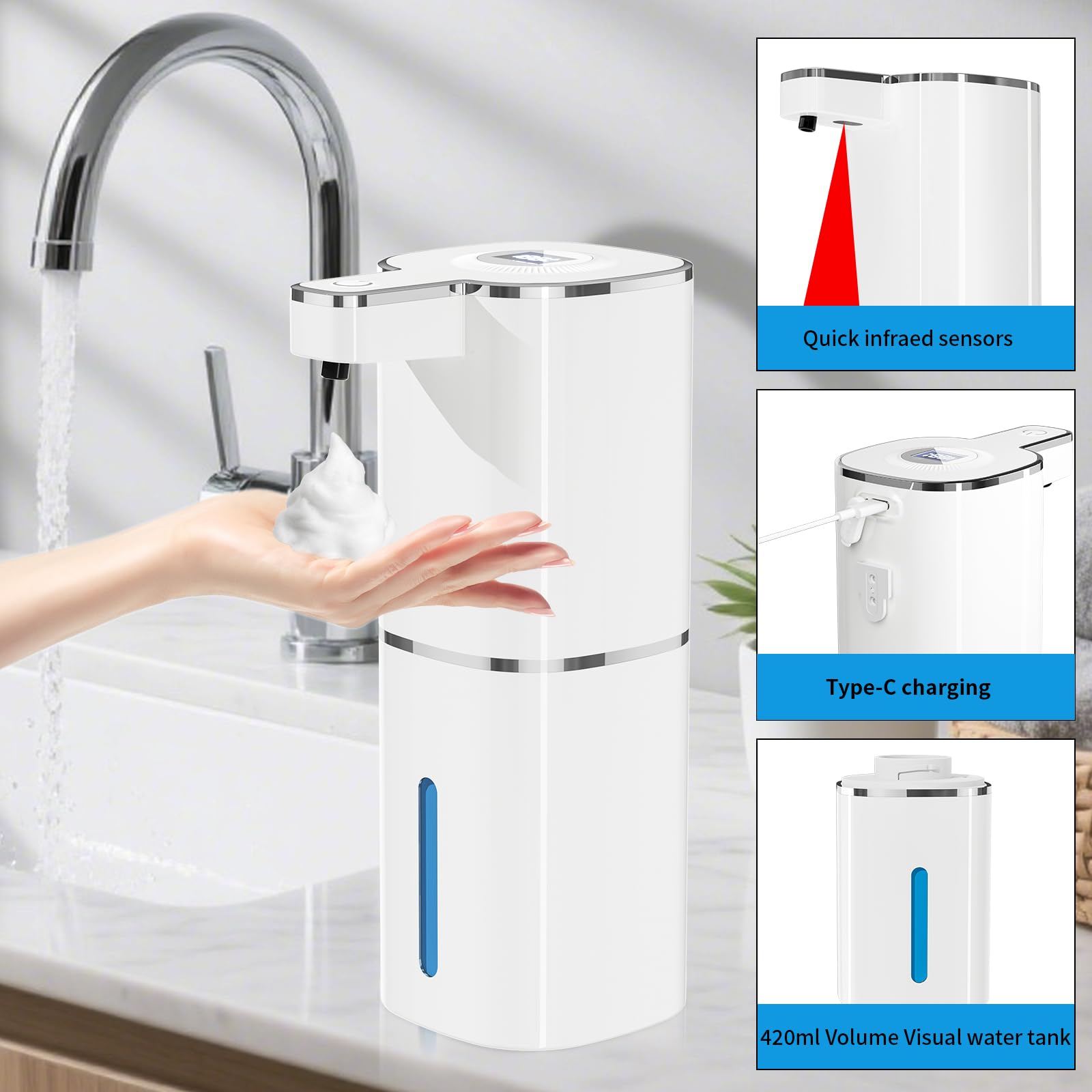 【Large Capacity Water Tank and 4 Adjustable Foam Settings】The 420ml/14.2oz transparent water tank reduces the hassle of frequently adding hand soap. It offers 4 selectable foam volume settings (Level 1 is suitable for children, Level 2 is for daily use, Level 3 is for grease cleaning, and Level 4 is for deep cleaning), meeting various cleaning needs.