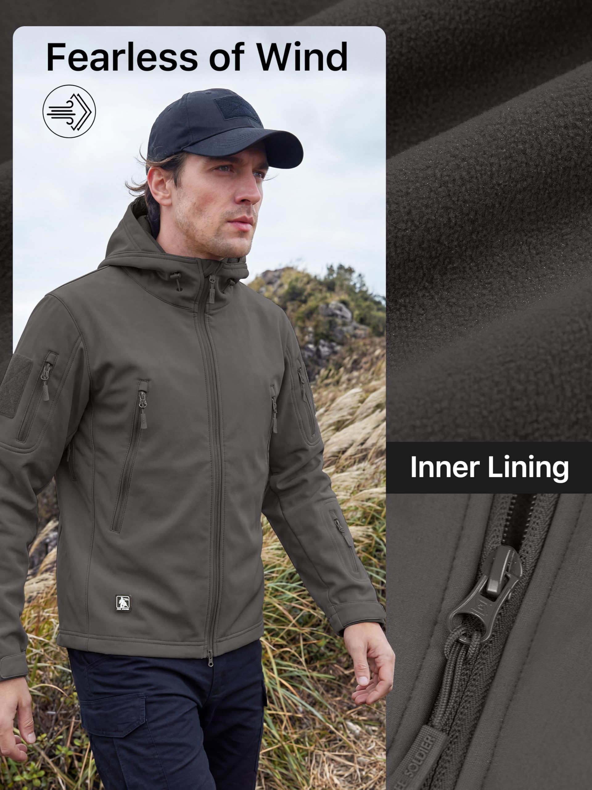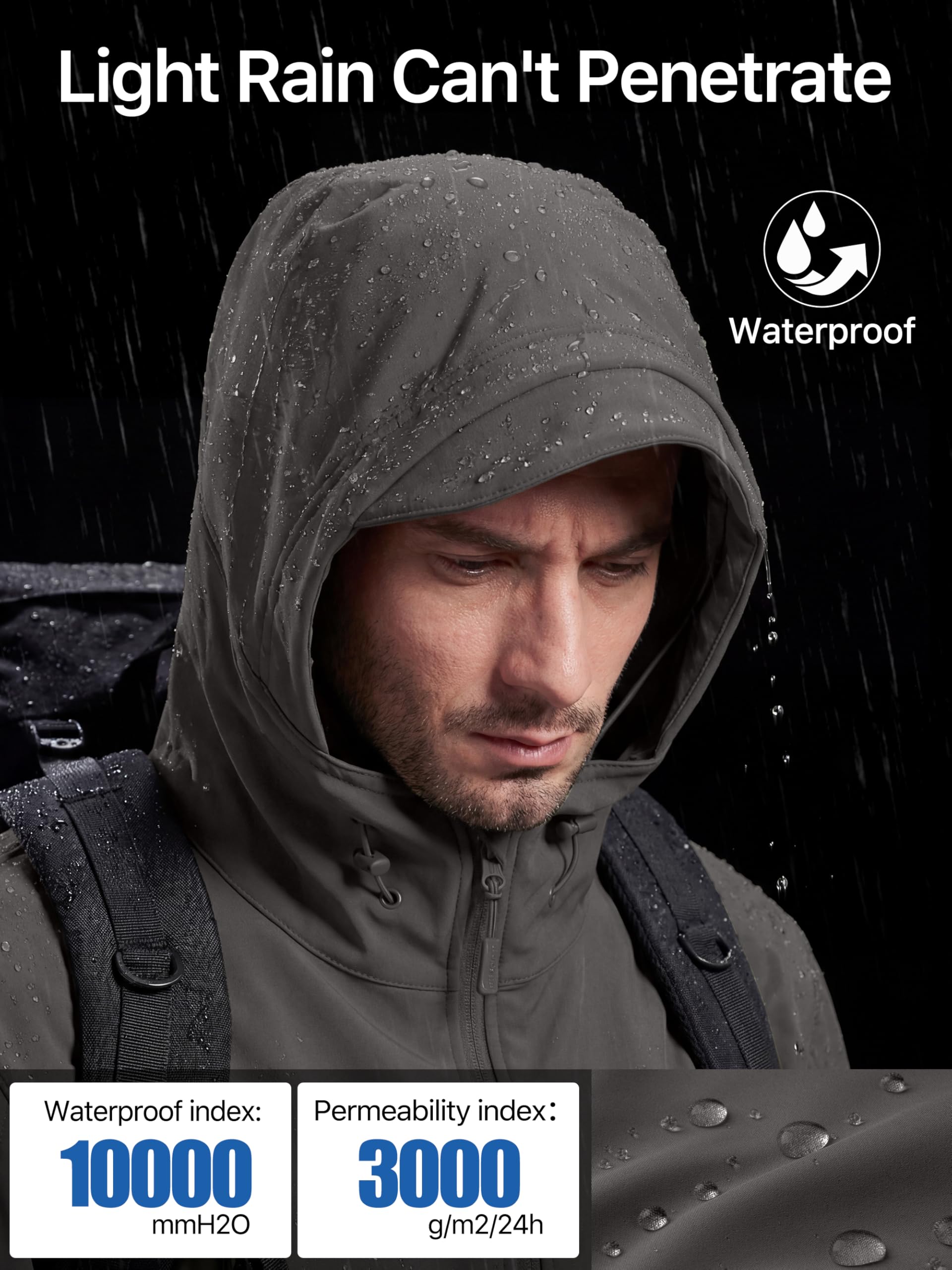 KEEP WARM & COMFORT- Men's Waterproof Softshell Jacket is made of 94% Polyester 6% Spandex and 100% Polyester Thermal 8000mm Fleece Liner. Scratch-resistant Polyester fabric and stretch spandex are especially suitable for outdoor activities with extreme flexibility and comfort. Designed with warmth and comfort in mind, this mens fleece lined jacket adopts a high-quality Polar Fleece Lining for breathing freely, a skin-friendly feel and superior moisture-wicking performance