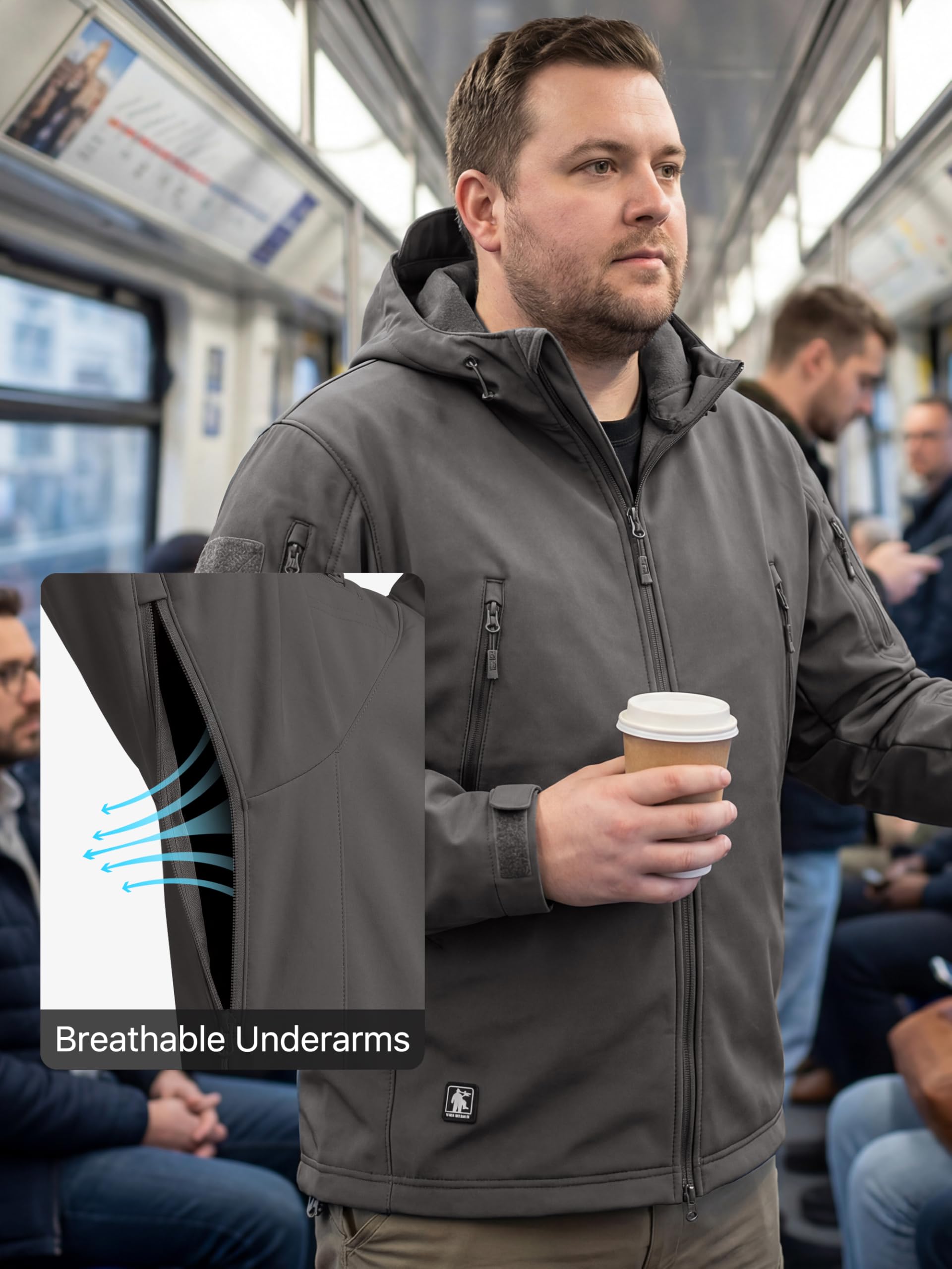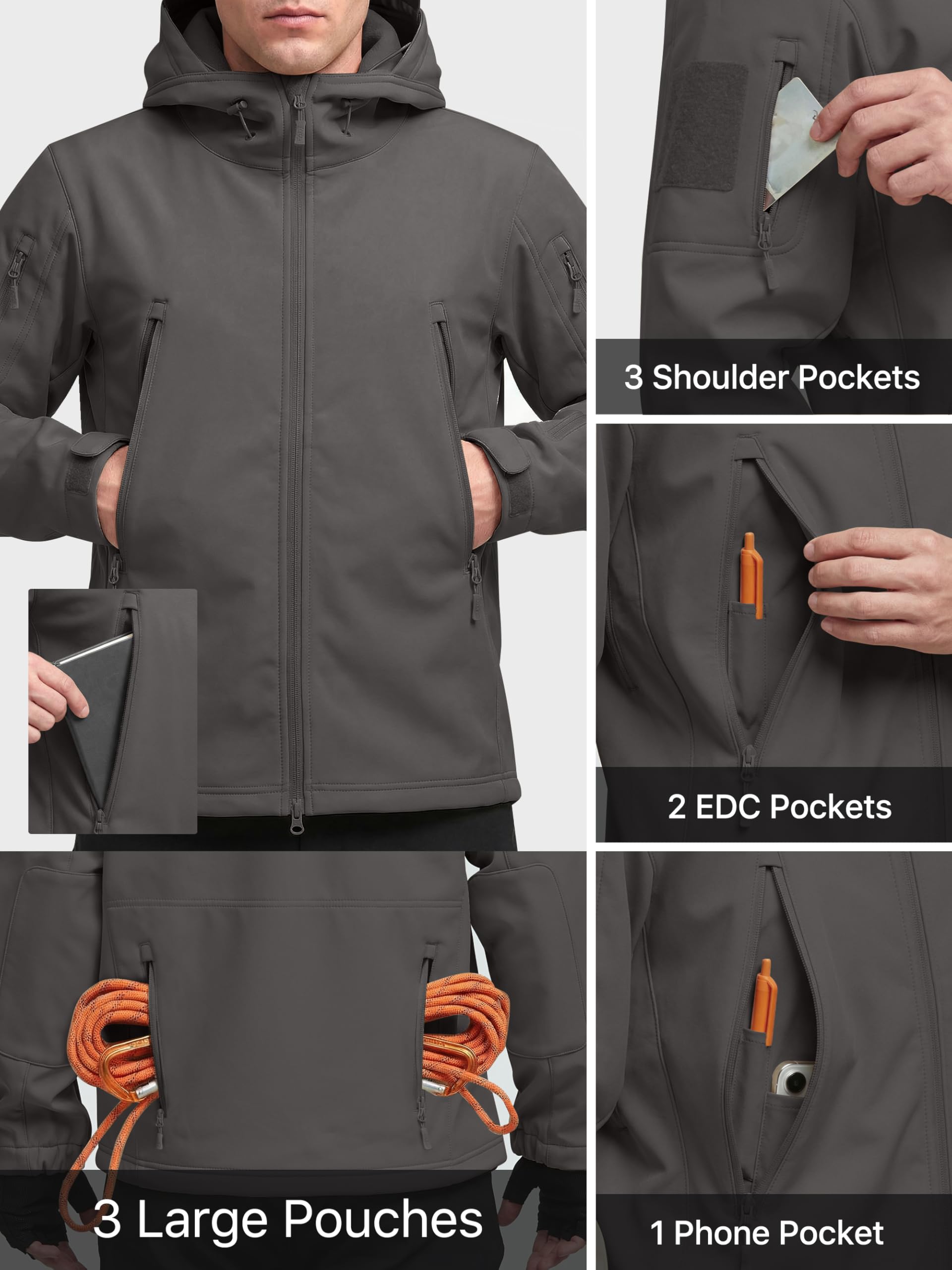 FUNCTIONAL POCKETS – Engineered for practical use, this tactical jacket features 9 strategically placed pockets. These include 2 large chest pockets: the right with 2 internal organizers for EDC items plus multi-function tactical D-rings; the left with 1 integrated pen sleeve. Also featured are 2 shoulder zippered pockets with hook and loop panels on the exterior, a lower-left forearm zipper pocket for small essentials, and a rear dual-zipper pocket for secure, hands-free tactical gear carry
