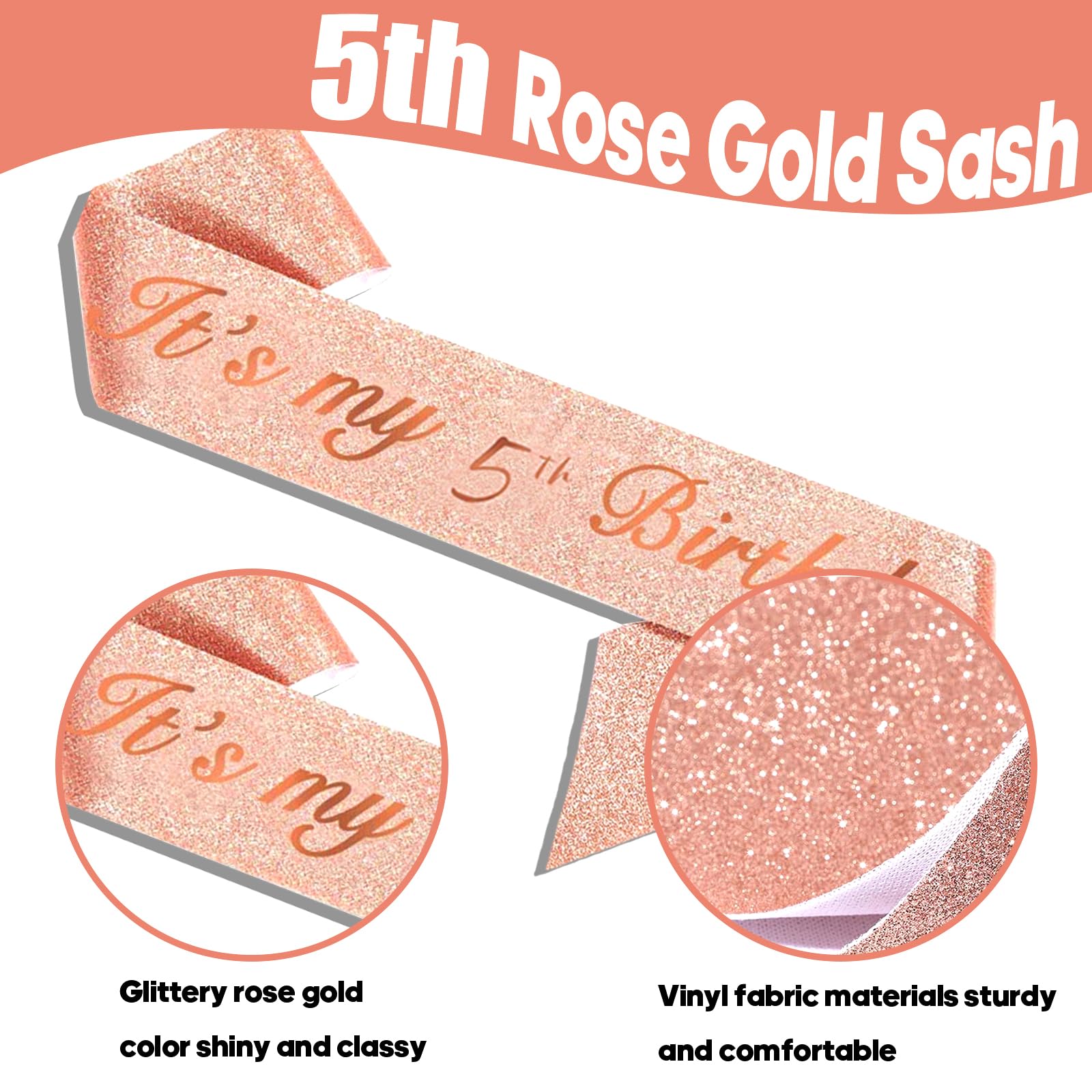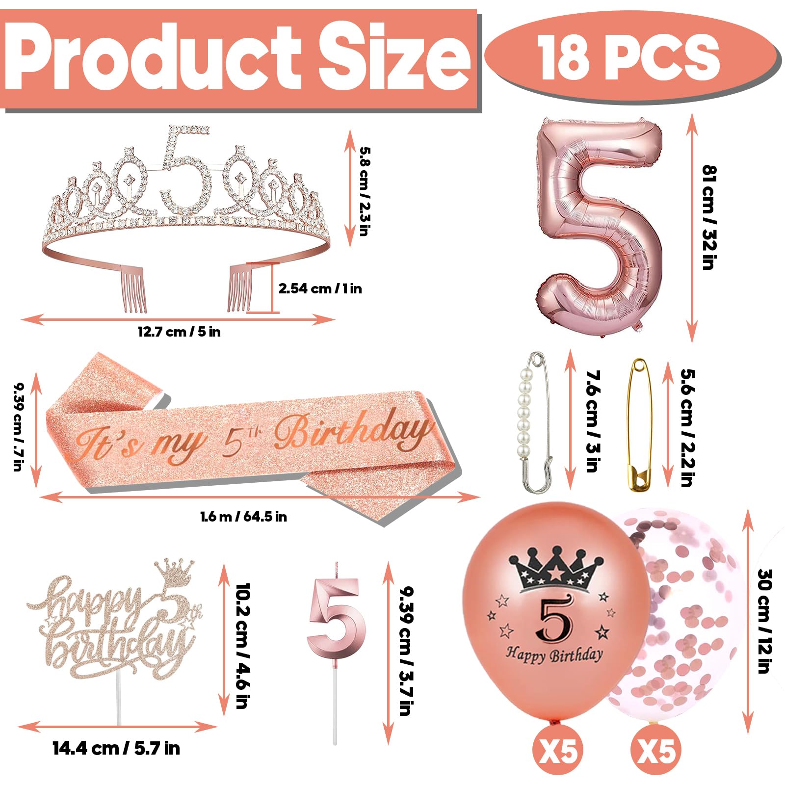 【5th Birthday Decorations】: Package coming with rose gold 5 birthday crown 1pc, 5 birthday sash 1pc, 5th birthday balloons 12pcs, happy 5th birthday cake topper 1pc, 5th birthday candles, This Birthday Gifts for women remind her and everyone in the 5th birthday party how fabulous she is.