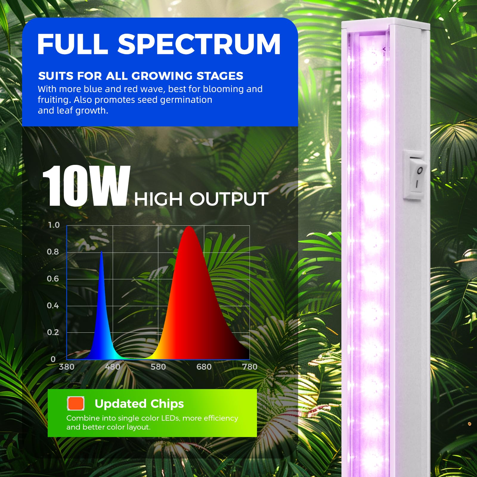Full Spectrum (Pink Color): Barrina T5 grow lights 2ft provide indoor plants with full-spectrum sunlight replacement. We provide the most reasonable grow light wave based on the ratio of the absorption of the plant.