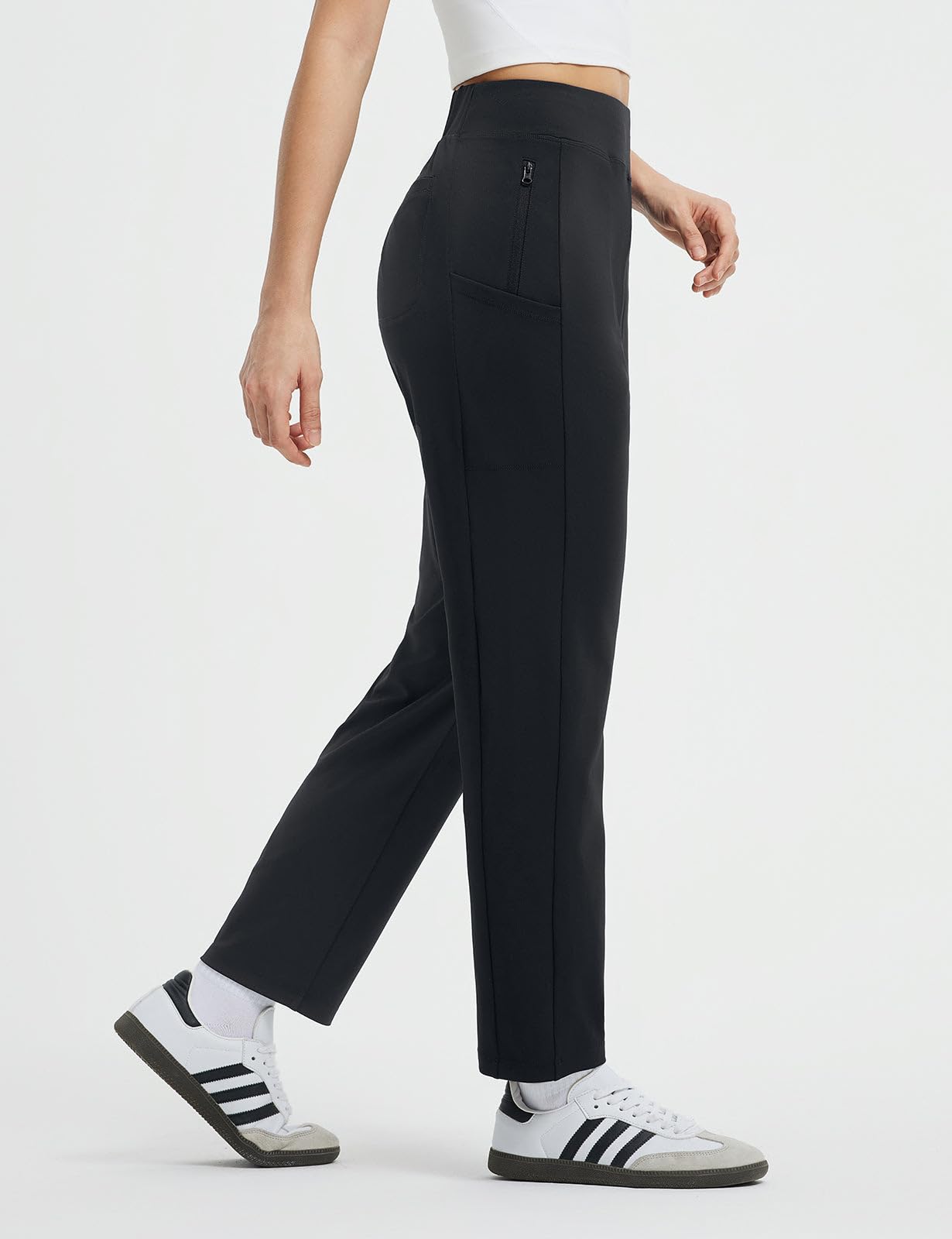 Versatile Occasions: Flat waistband and mockfly design, these pants pair with heels for work formal looks or flats sneakers for travel casual athletic styles seamless transitions from business meetings to commute rush