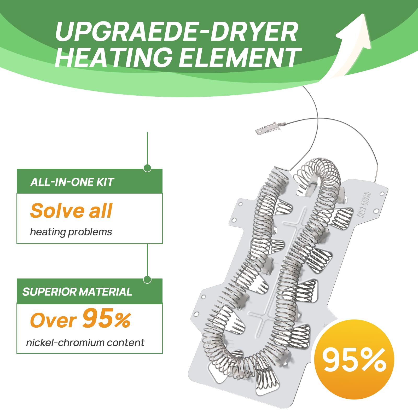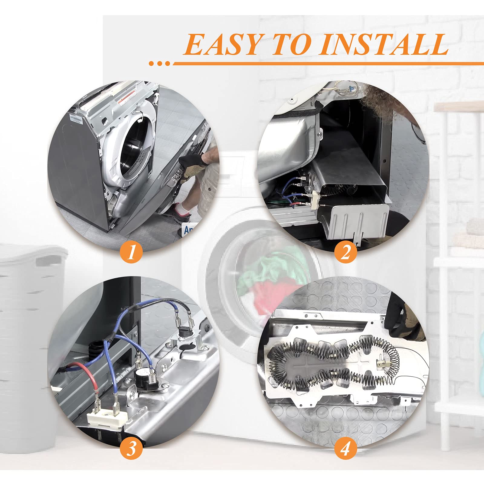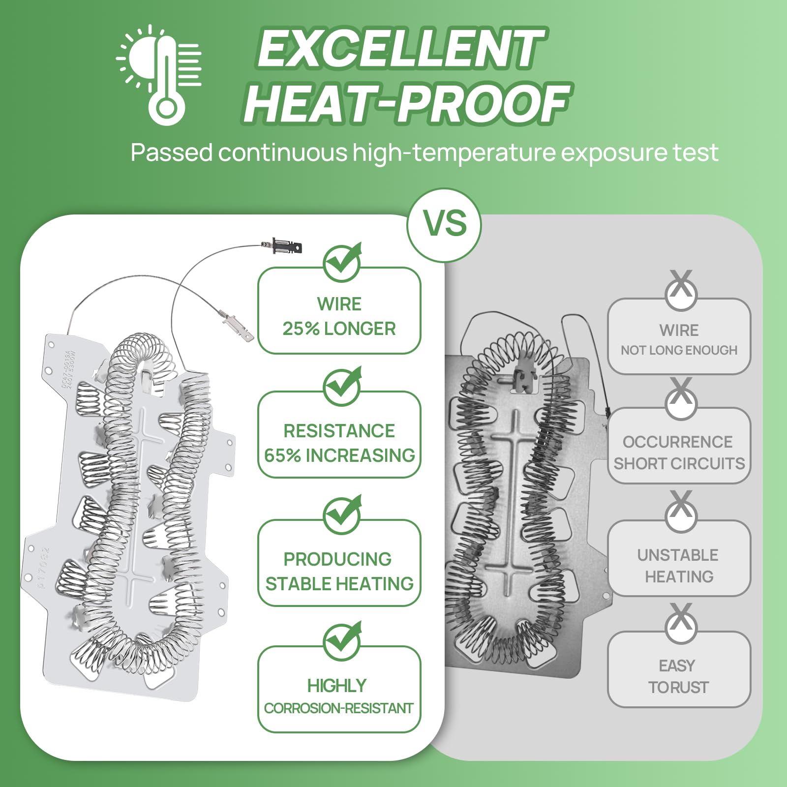 【FIX ISSUES & EASY TO INSTALL】: Easy to fixes many dryer problems such as no heat or not enough heat or dryer too hot, takes too long to dry clothes, shuts off too soon, unusual noises or loud noises, timer not advance etc. To confirm that the Heating Element is faulty, unplug the dryer when the symptom occurs. Easy to install, saves your time and money from expensive repairs. Disconnect the power before installing this part and ensure your dryer vent clean
