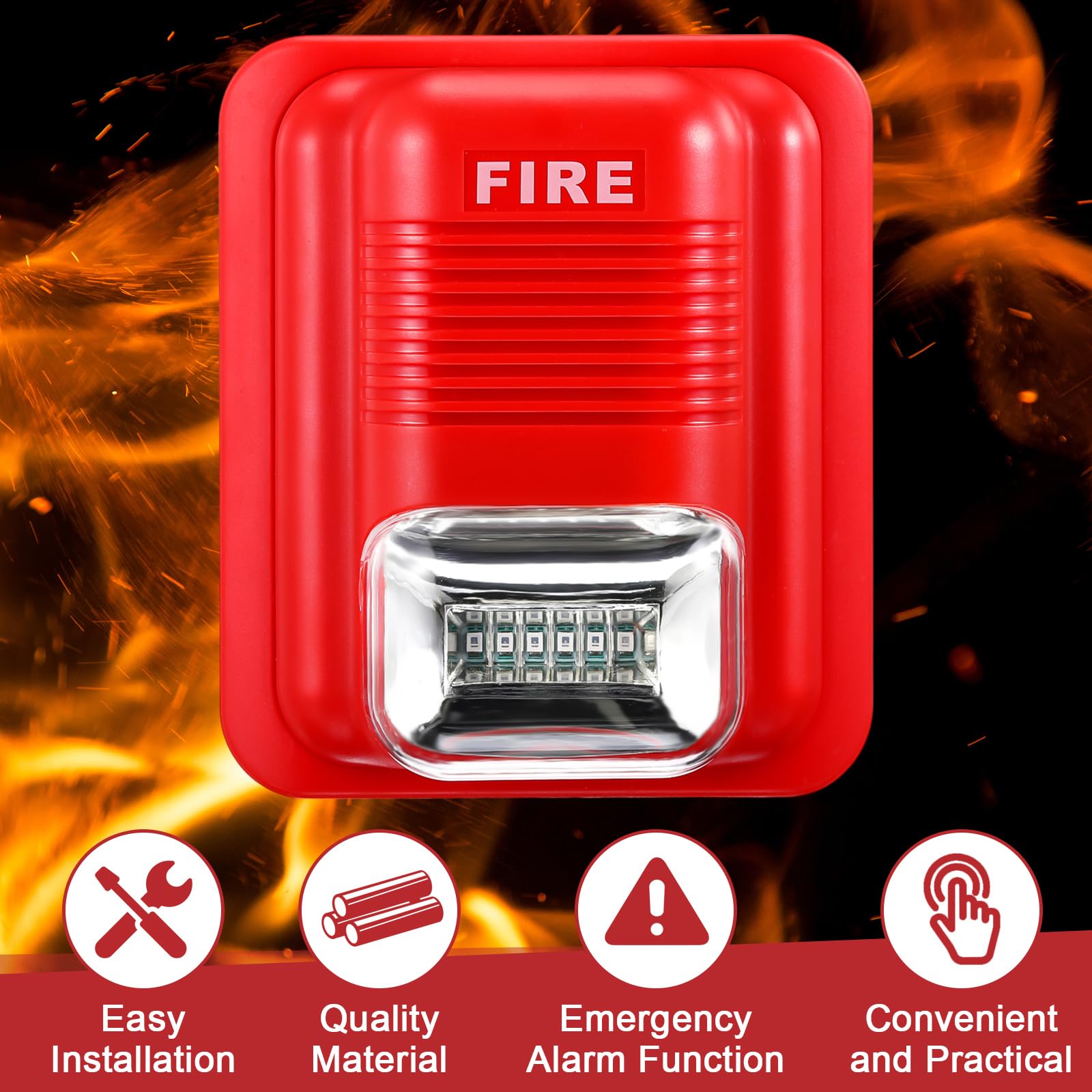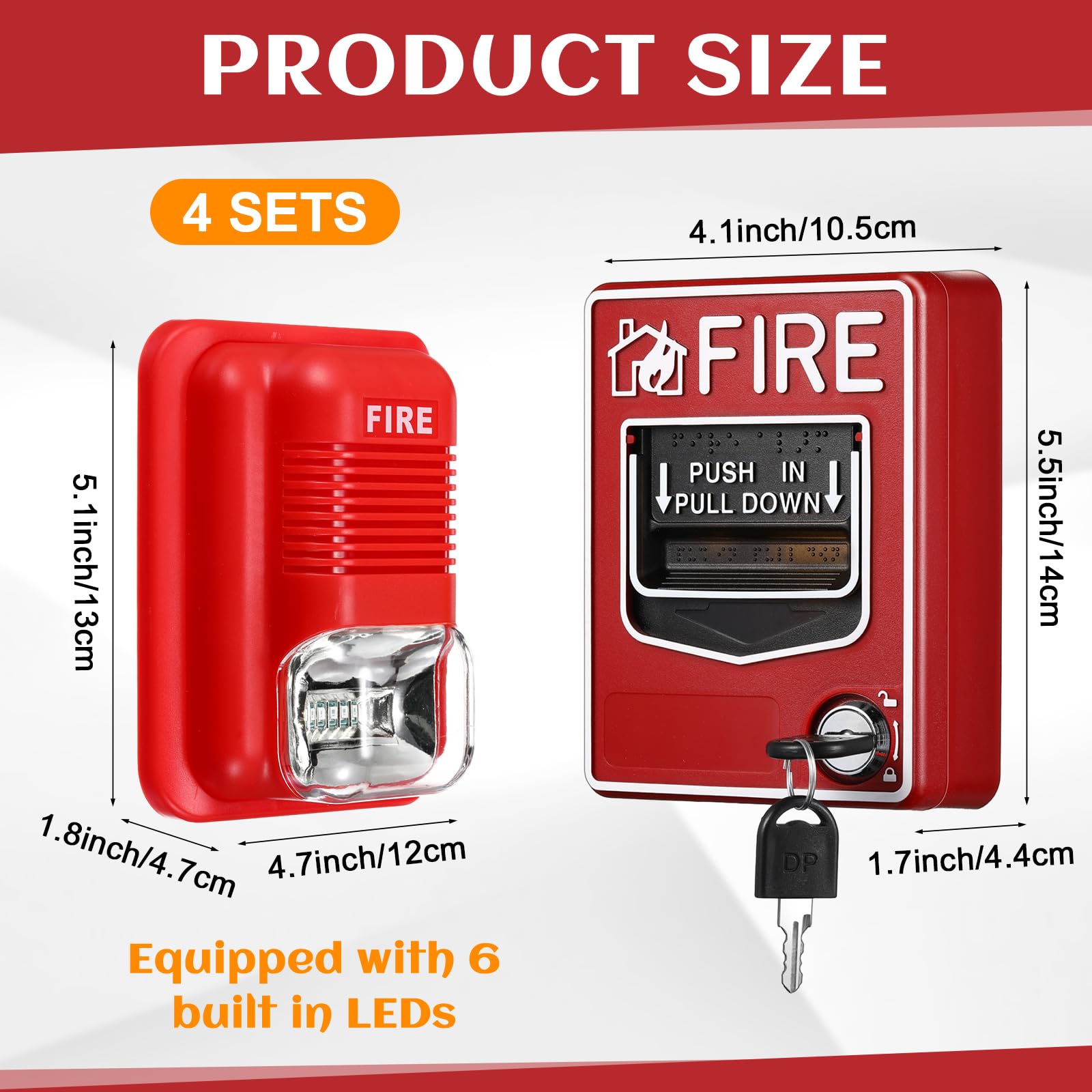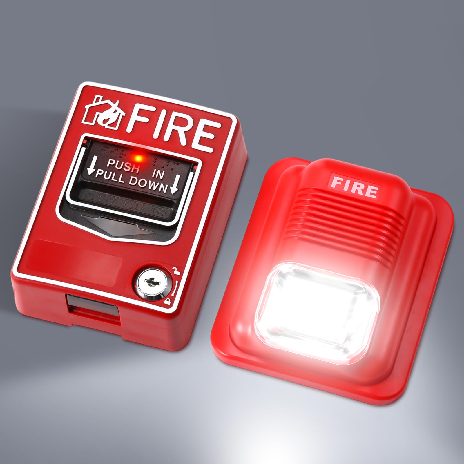 Quality Material: made from quality, sturdy plastic, the fire alarm pull station and the fire alarm siren set not only stands out for its elegance but also ensures extensive durability; Coupled with sound and light alarms equipped with 6 built in LEDs, this tool provides enhanced visibility, crucial during fire emergencies