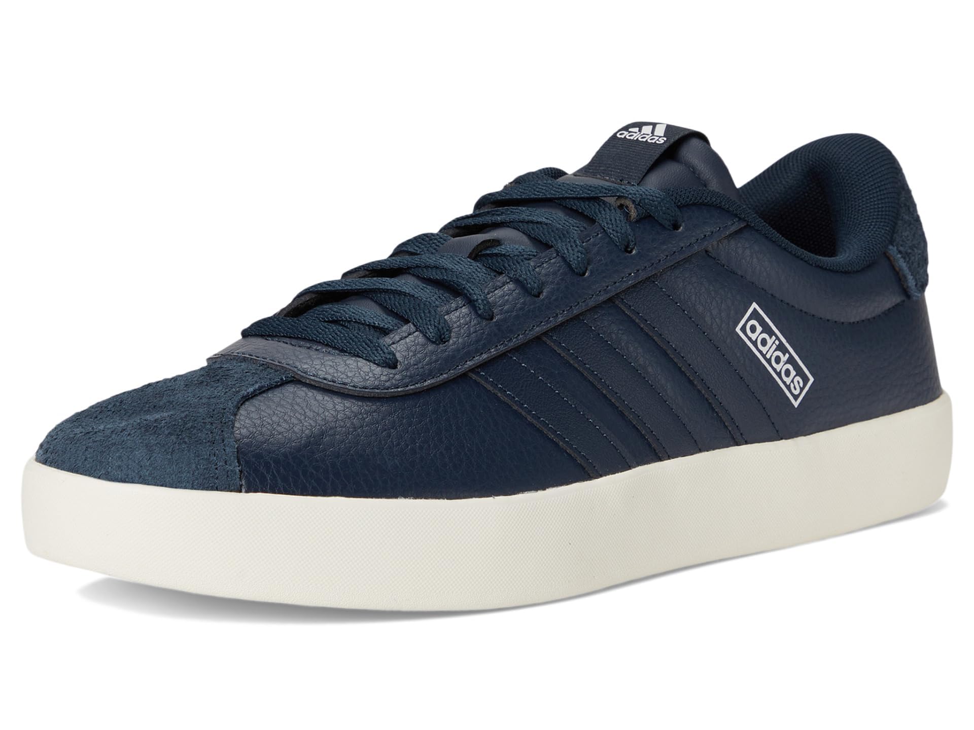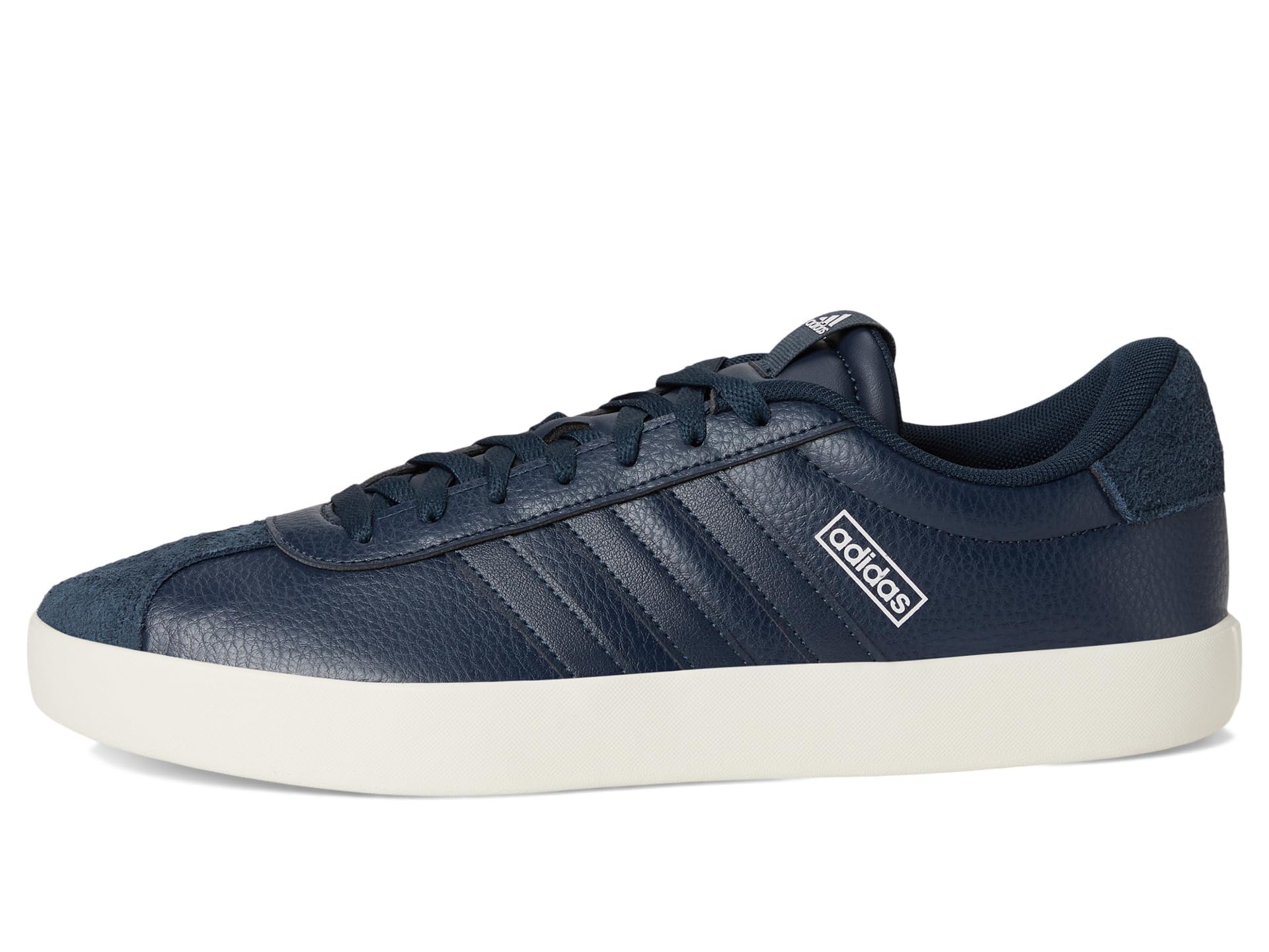 Description These men's leather sneakers from adidas are simple, yet statement-making. The smooth leather upper is lined for comfort, and lightweight cushioning adds support for all your moves. They're finished with a vulcanized rubber outsole that offers flexibility and skater-style flair.