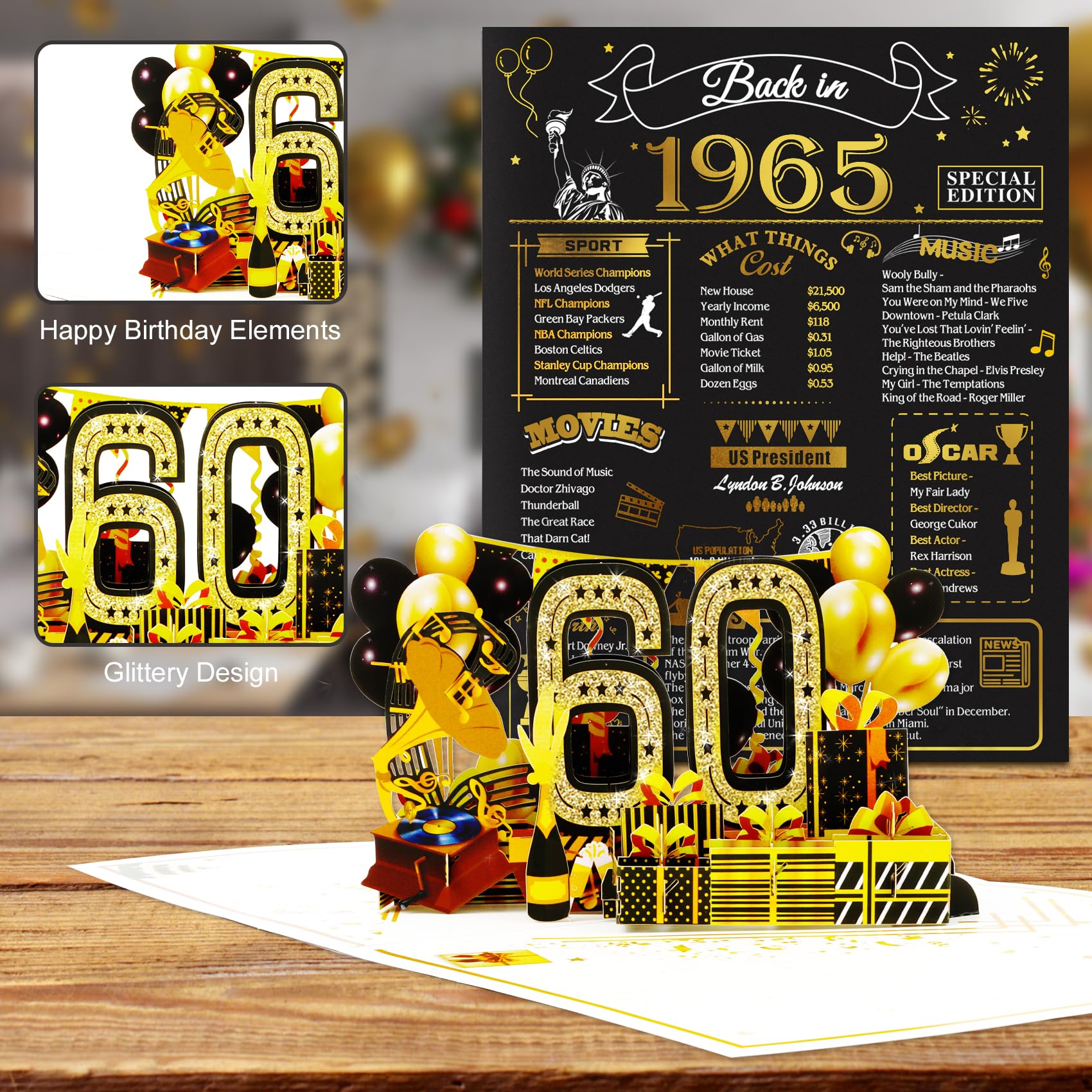 60th Birthday Pop Up Card: This cute 60th birthday pop up card is mini-masterpiece displays a beautiful 3D pop-up design.It can be popped up of features “60” with balloons and gift box. Ideal Creative Gifts for party. Makes your birthday or anniversary party’s decorations stand out