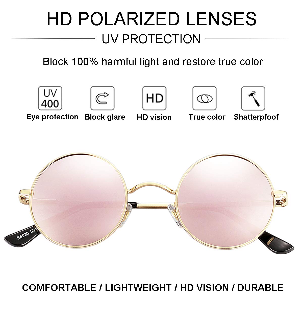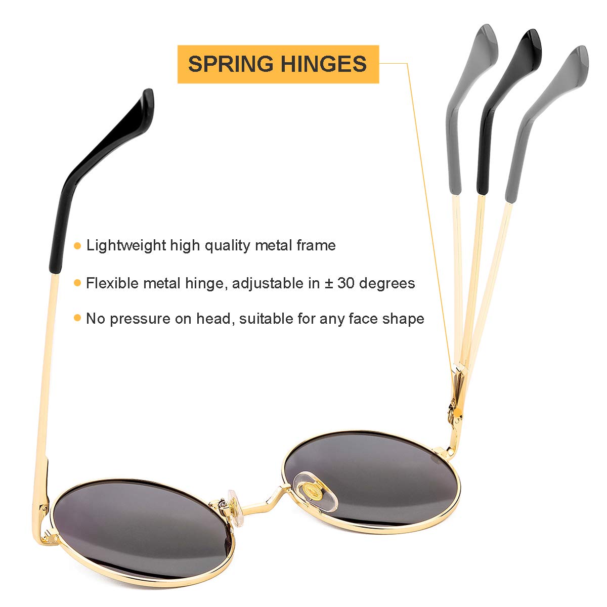 ★ PREMIUM MATERIAL - Scratch-resistant polycarbonate lens with anti-glare coating, delicate lightweight metal frame, soft and anti-skid nose pads, flexible spring hinges, these sun glasses are very sturdy and comfortable.
