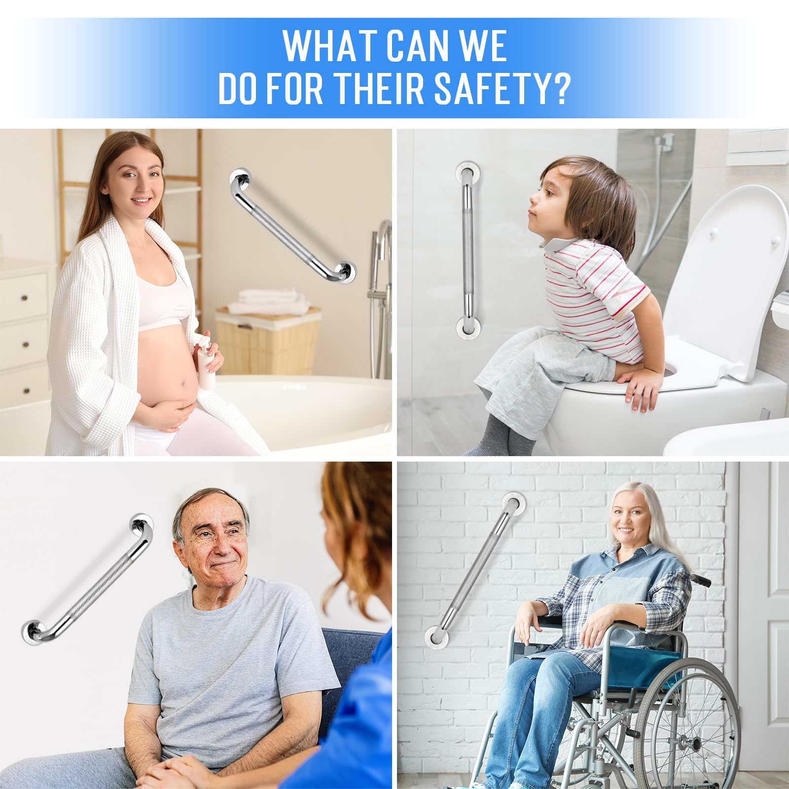 【Non-Slip Design】Our bathroom grab bars with anti-slip knurled surfaces on the middle, increases friction and improves anti-slip effect. Providing a stability and balance for people with trouble standing for long periods of time , and reducing the risk of falls in the bathroom.