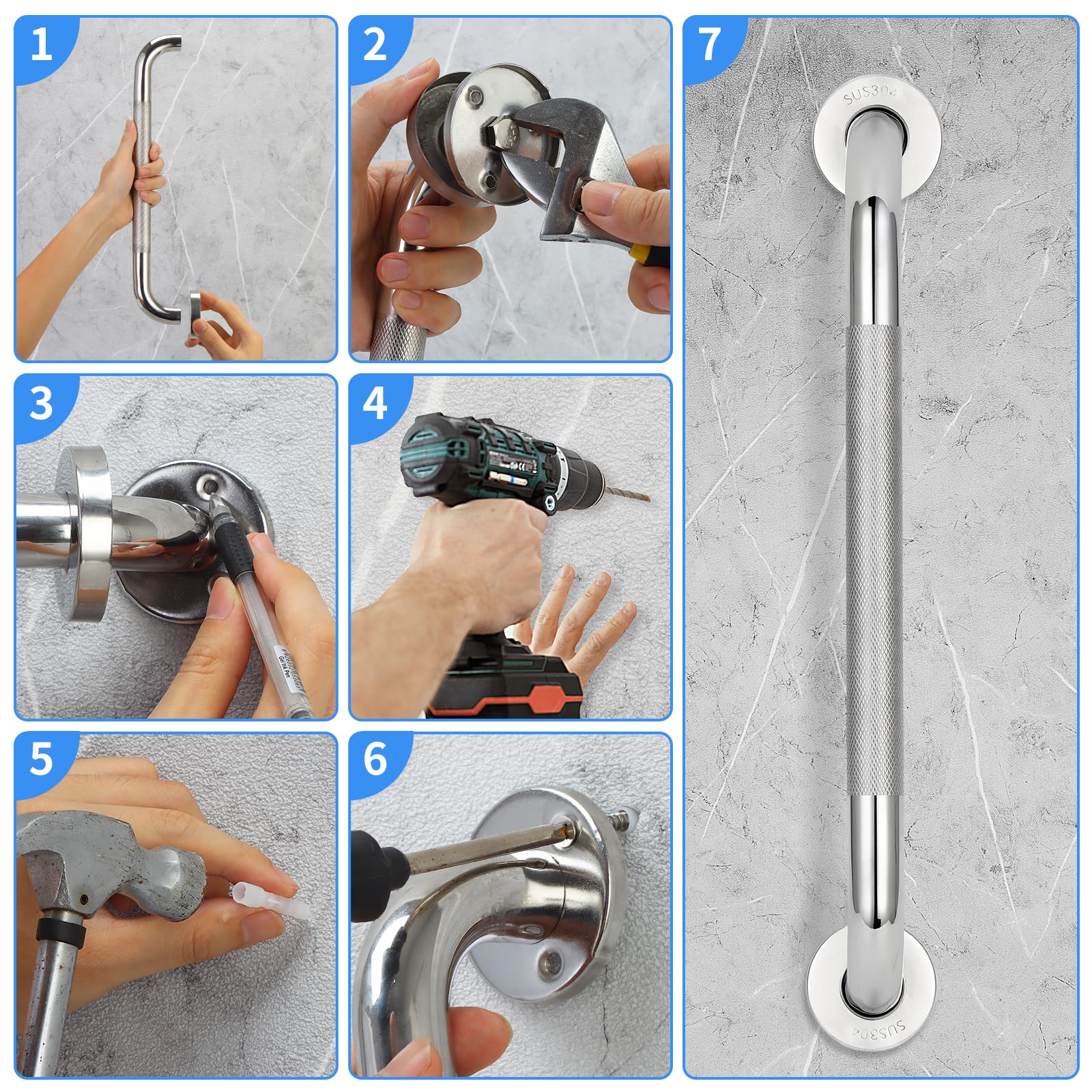 【Stainless Steel Material】The shower grab bars are made of SUS 304 stainless steel which is waterproof, rustproof, sturdy and stable. Grab bars for bathtubs and showers can support up to 500lbs, creating a safety bathroom and staircase experience for your family.