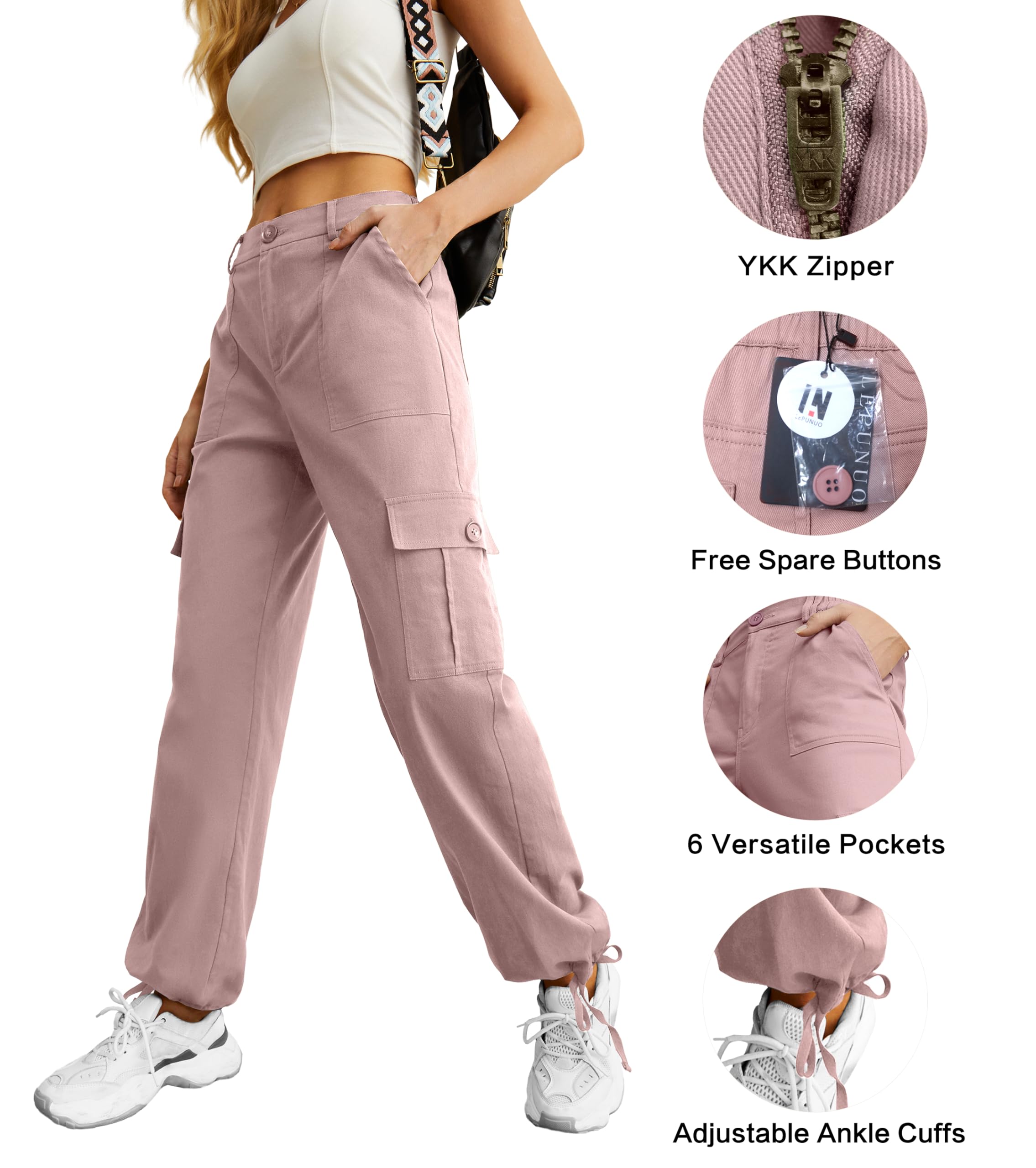 Features: Lepunuo Cargo pants with 6 pockets, 2 deep side pockets for phone, wallet and keys, and 4 pockets for your essentials. Stretch elastic high waist, Relaxed fit, Zipper and button closure hip hop joggers sweatpants, Wide leg cargo pants, Y2K style, Hippie outfits; The adjustable ankle cuffs of the hiking pants keep legs long, and the loose fit is ideal for casual or sporty