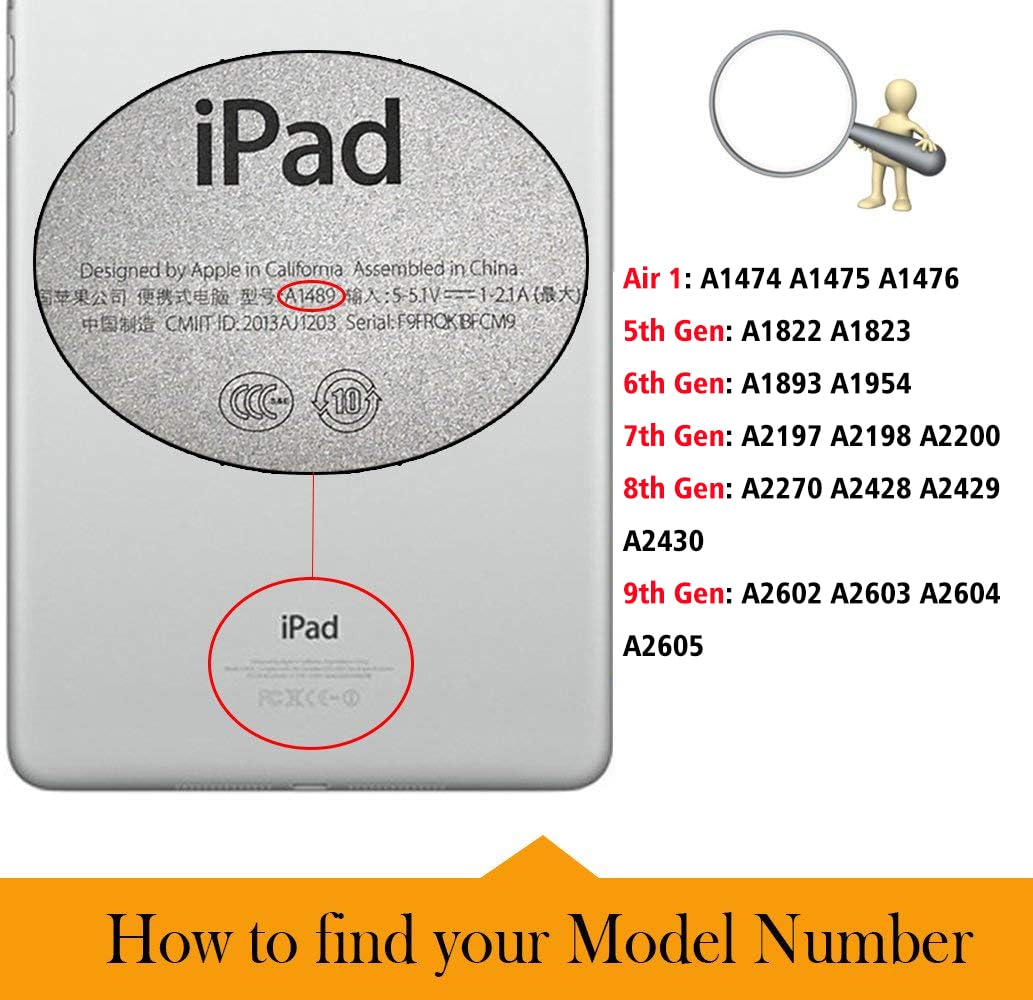 [Compatible Model]: for iPad 5th 6th 7th 8th 9th Gen and iPad Air 1st gen 9.7 inch, fit Model A1474,A1475,A1476,A1822,A1823,A1893,A1954 A2197 A2198 A2200 A2270 A2428 A2429 A2430 A2602 A2603 A2604 A2605