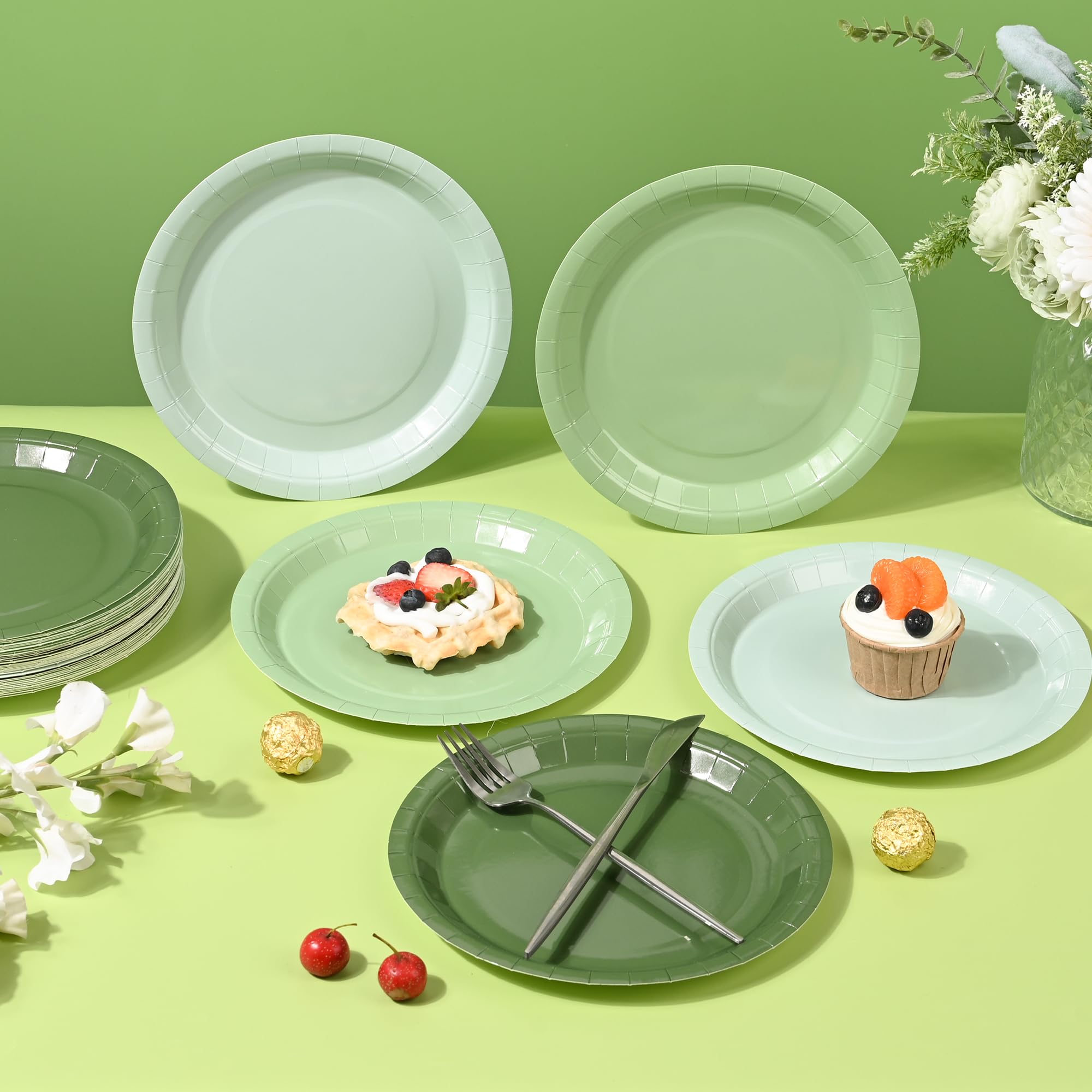 Sage Green Decorations: These sage green paper plates feature cute and decorative colors that adds a cheerful touch to your table setting, perfect for any celebration or event where a pop of color is needed, making your festivities more memorable.