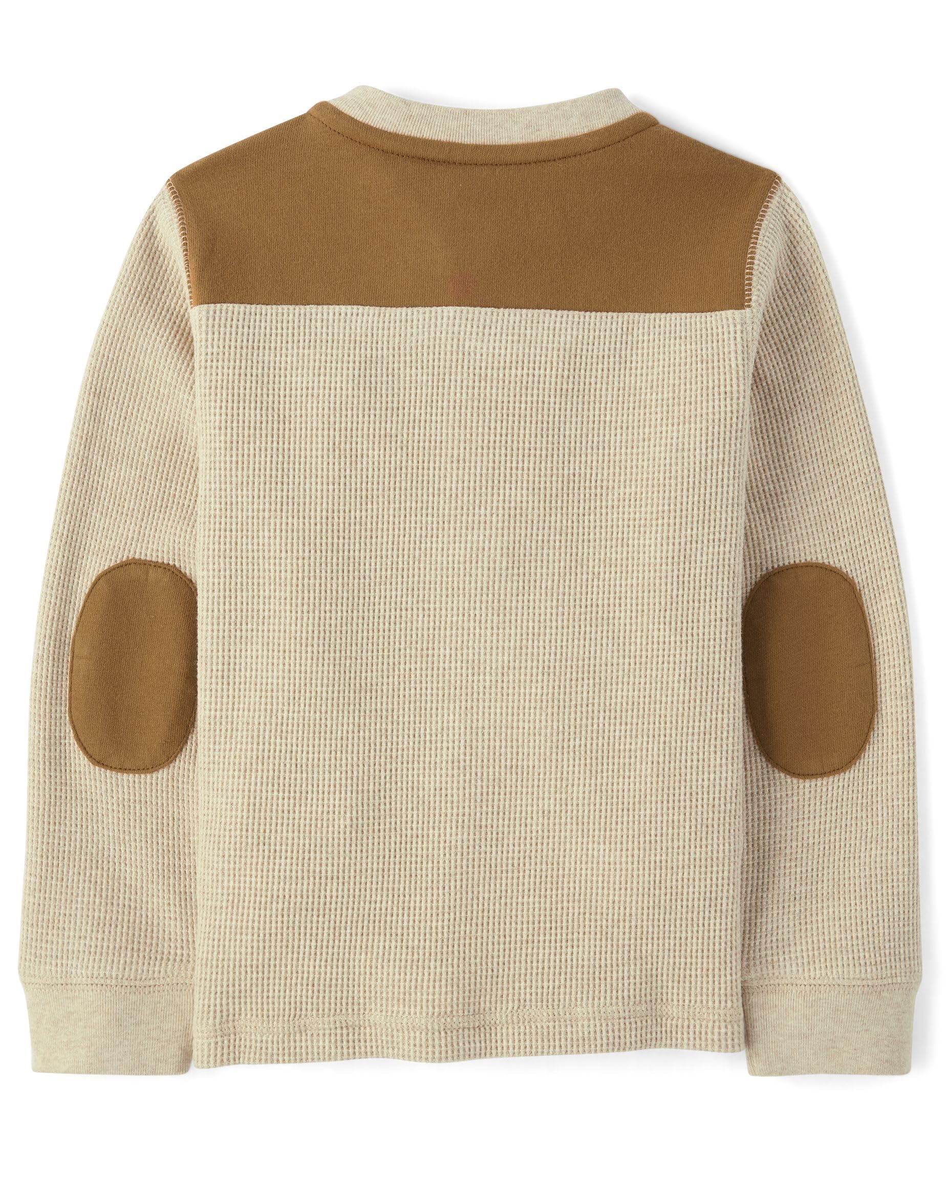 DESIGN: Crew neck, long sleeves with elbow patches