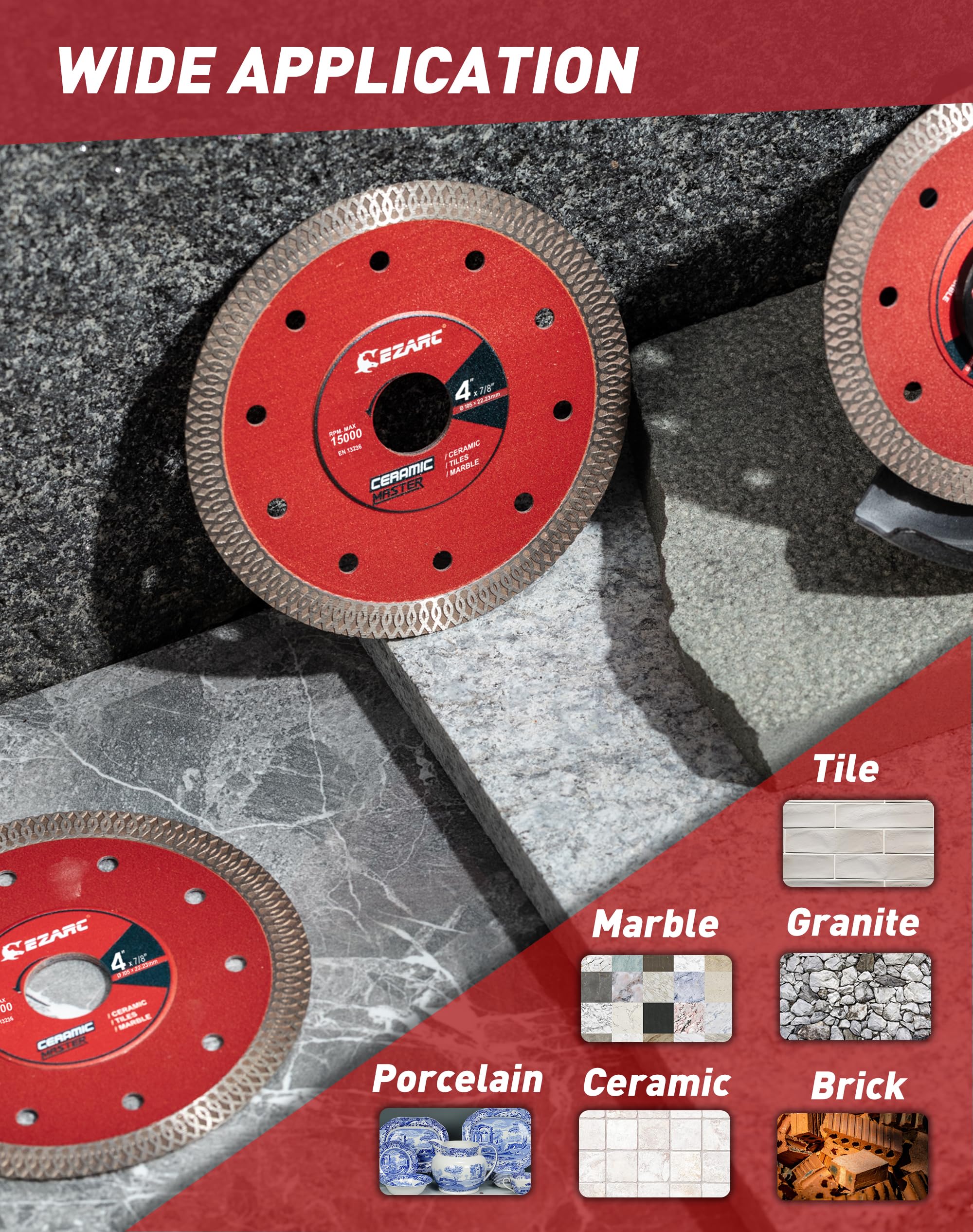 【Super Thin Design】EZARC Super thin diamond saw blade is a specialized cutting disc designed for precise and clean cutting of various tile materials, such as ceramics and porcelain and suitable for both dry and wet cutting. It will be the perfect companion for tile installers and DIYer