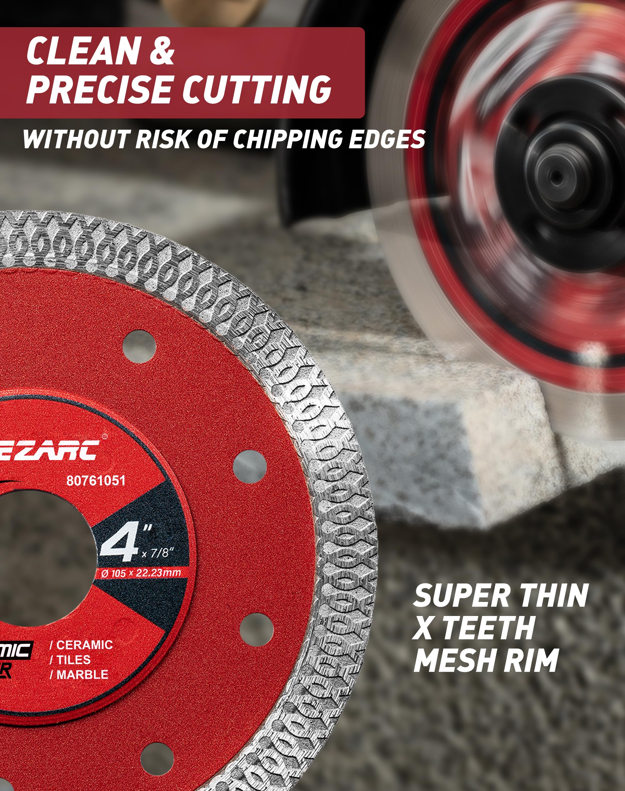 【Clean & Precise Cuts】The turbo mesh rim featuring X-teeth and a cutting edge infused with diamonds guarantees precise and neat incisions with hardly any breakage, making it perfect for detailed tile tasks or projects where visual appeal and accuracy are of utmost importance