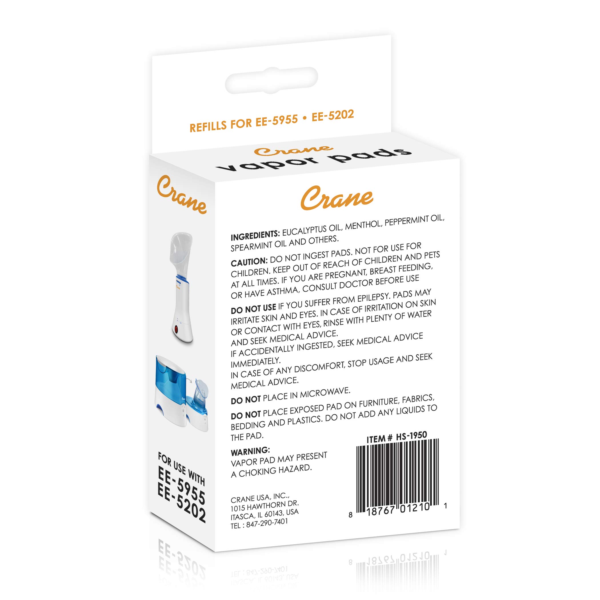 COMPATABILTY: Universal vapor pads designed for use with Crane Droplets (EE-5302), Corded Steam Inhaler (EE-5955), and Warm Mist Humidifiers (EE-5202). These vapor pads are also compatible with all Vicks’ humidifiers, vaporizers, and steam inhalers