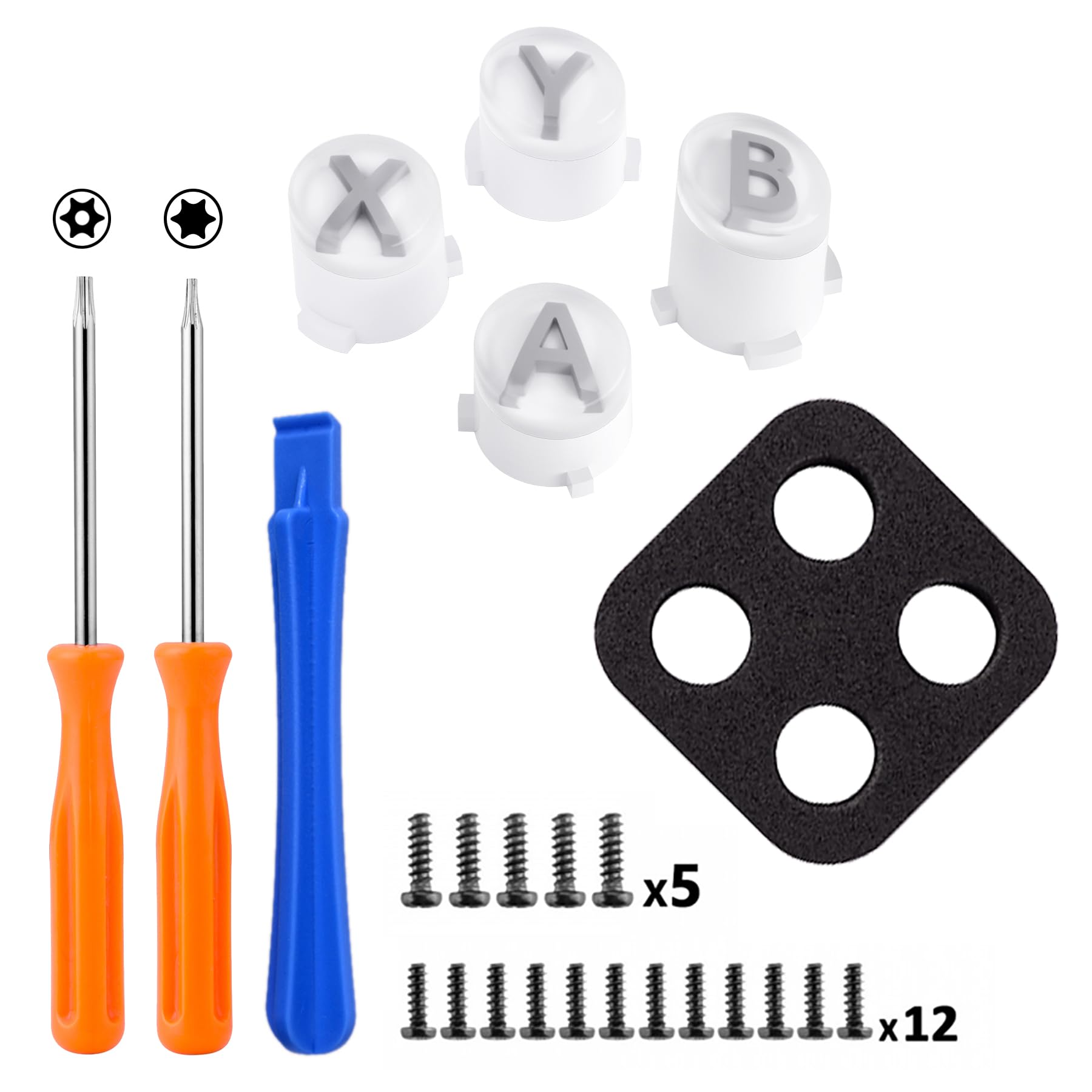 Package includes: 1* ABXY buttons, 1* T8H screwdriver, 1* T6 screwdriver, 1* Open shell tool, and spare screws (The controller, dpad, thumbsticks and other buttons are not included.)