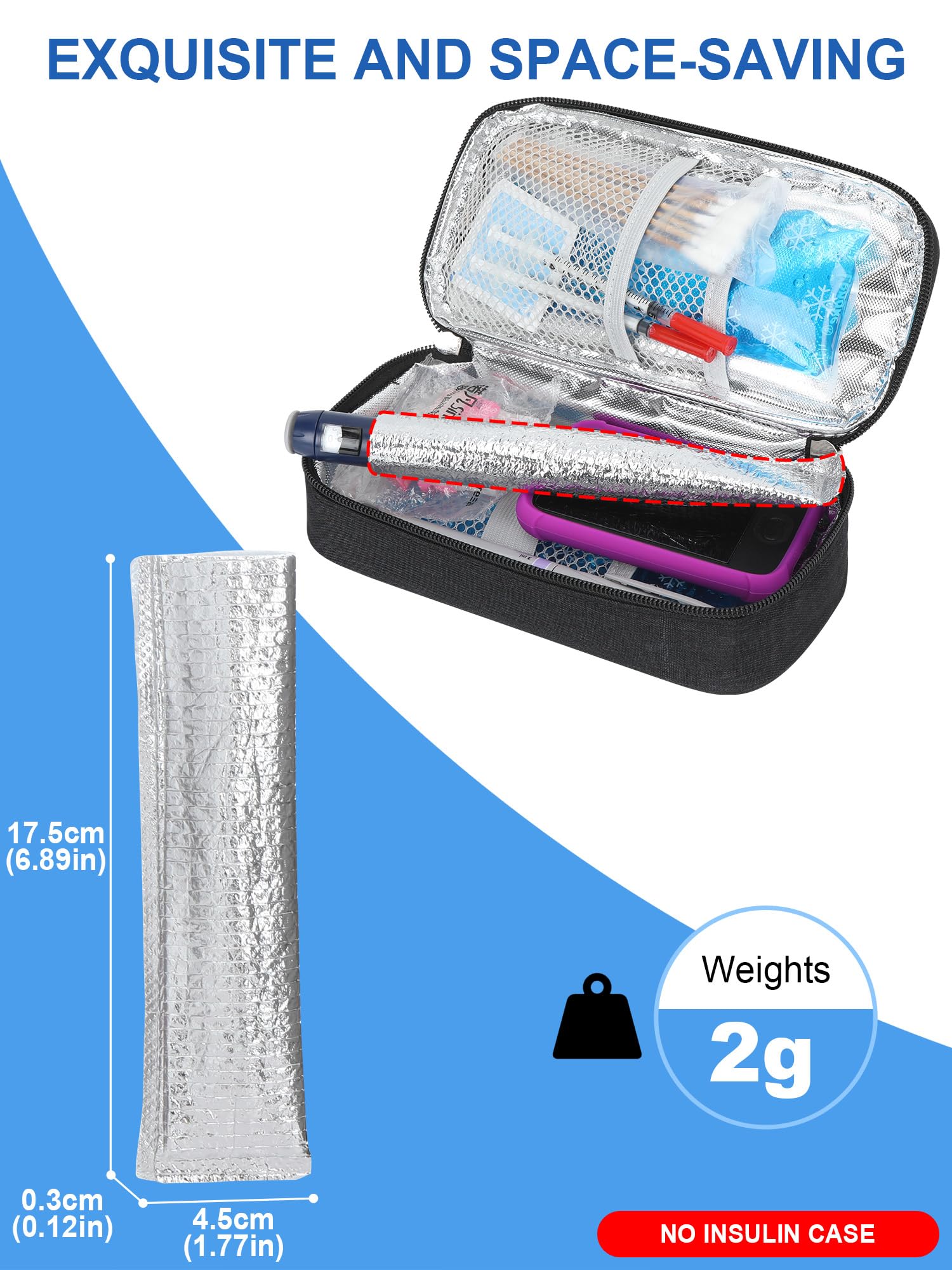 Please Note: The package only includes 2-pack aluminum foil bags, not including the insulin bottle and cooler case for display. A single aluminum foil protection bag can store 1 insulin pen or 1-3 insulin vials, which is the perfect accessory for the medicine refrigerator