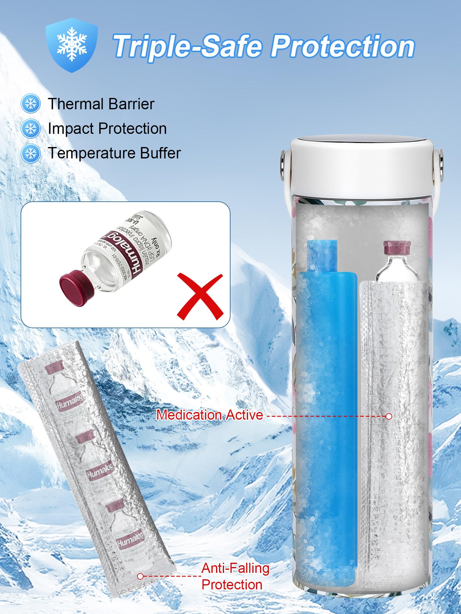 Keep Insulin Safe from Freezing: This insulin protection bag uses thickened insulation foam and aluminum foil to keep the internal temperature stable. When you place the medicine in a cooling device, it will protect your medicine from rapid cooling to freeze, and also slows down the internal temperature rise as the surrounding temperature rises