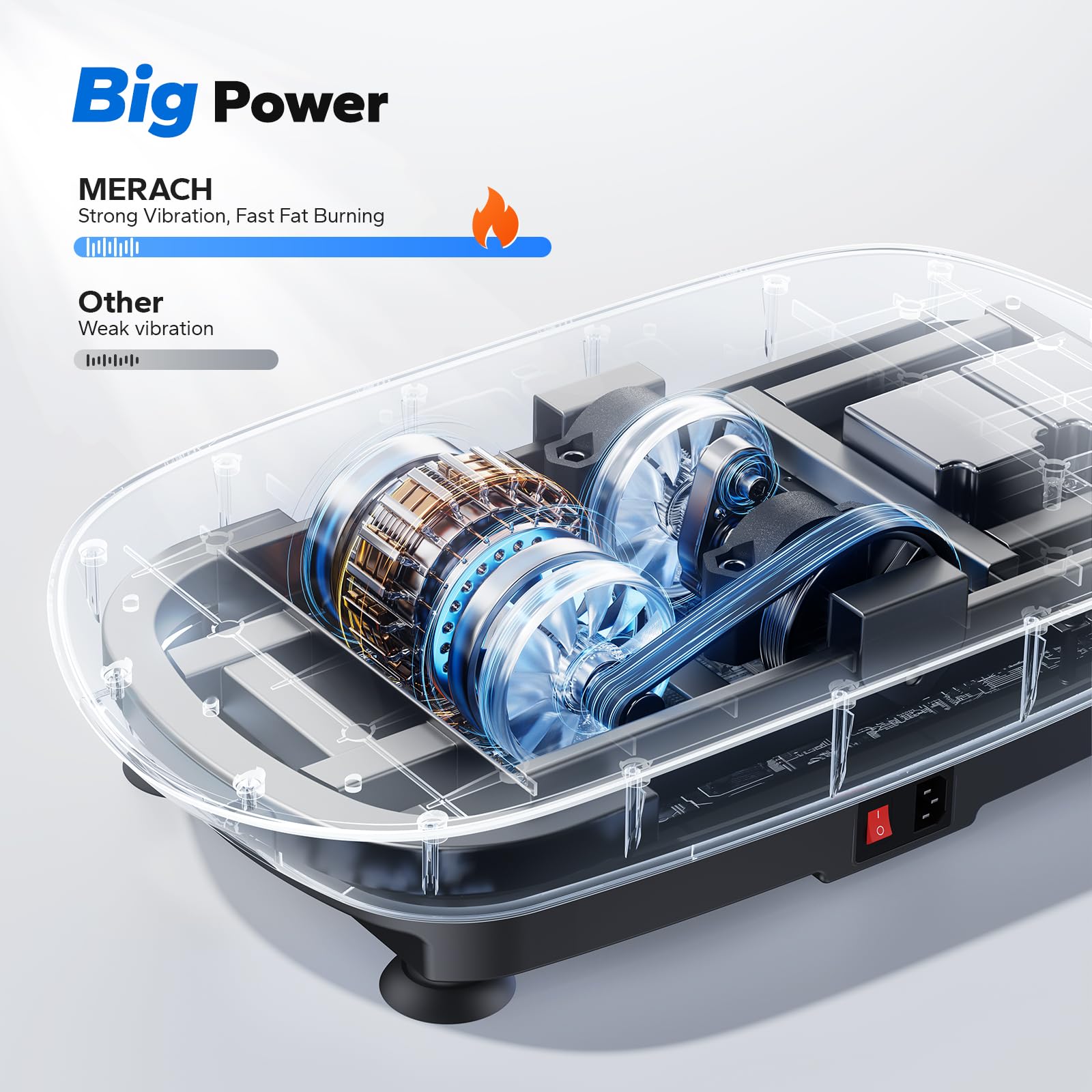 [Powerful Fat Burning & Efficient Toning] Equipped with a high-torque motor, Merach slim vibration plate platform for weight loss delivers intense oscillations to activate muscles 30x faster than static exercises. The built-in LED display tracks real-time calorie burn and workout duration, helping you visualize progress instantly. Stay motivated—achieve visible toning results with 15-minute targeted sessions, perfect for busy professionals and fitness-driven users.