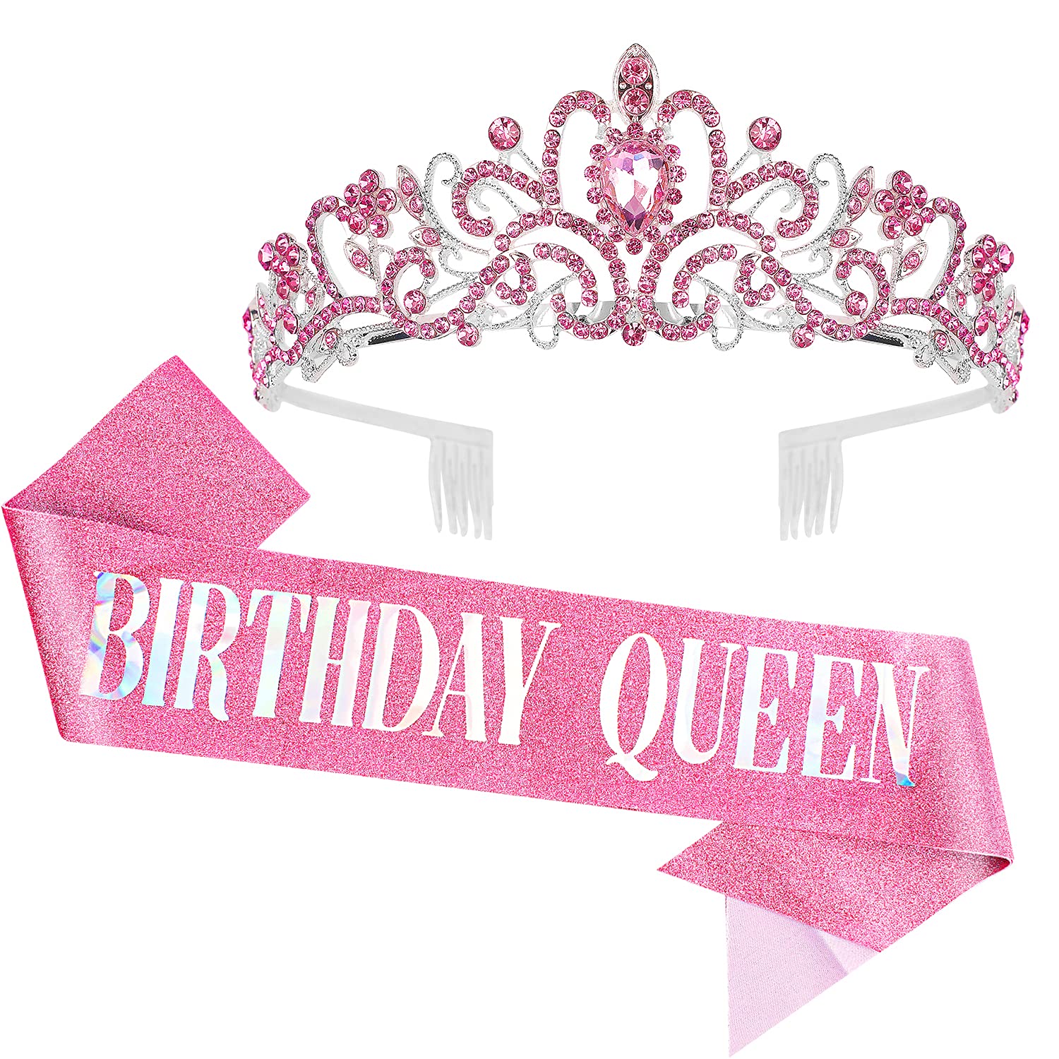 Size:crowns approximately 1.5 inches in height, 5 inches in diameter; birthday sash:67inch, weight: 0.176 lb, Perfectly suit for any age women and teen girls