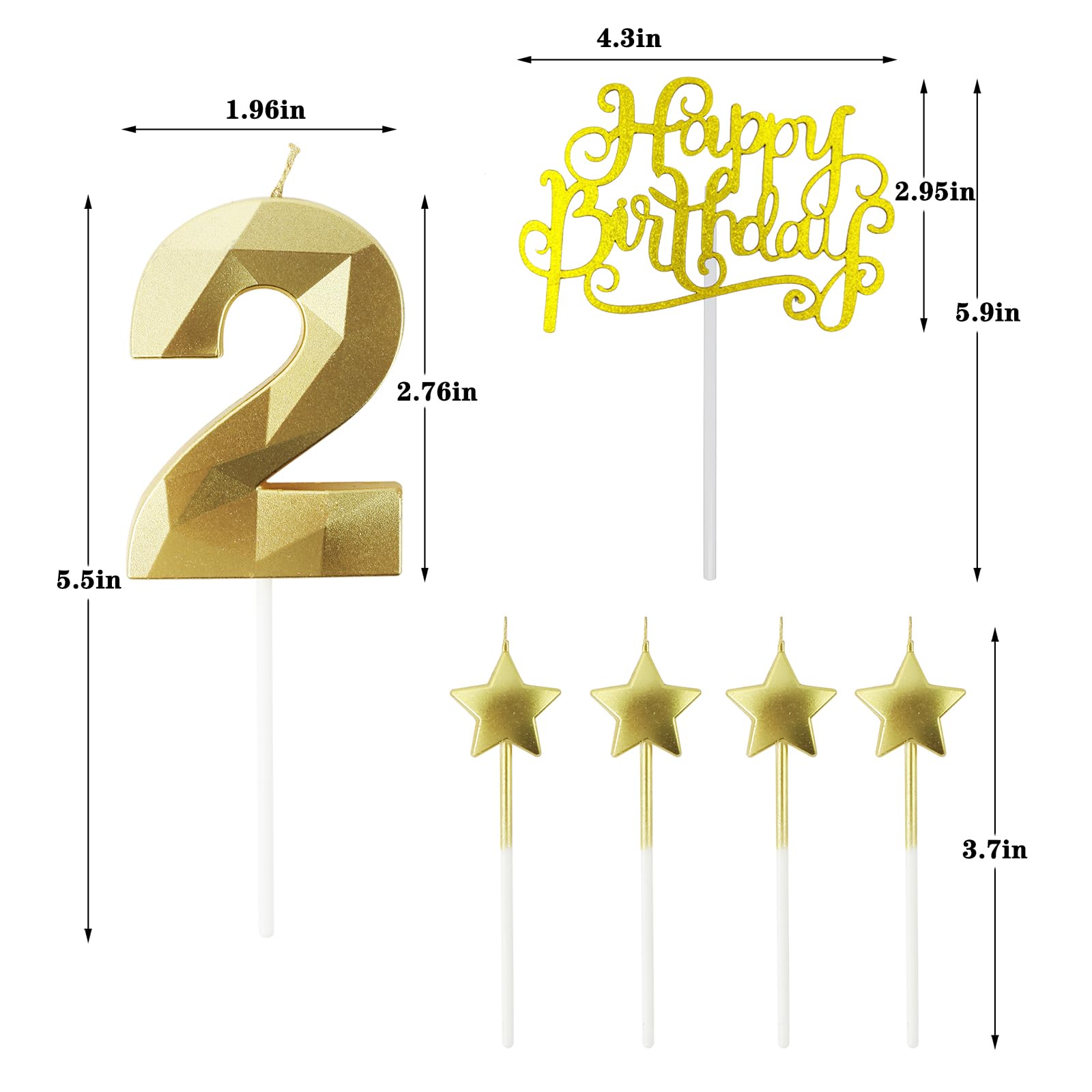 The unique diamond design and gorgeous metallic color of 3D diamond digital candles are suitable for birthday cake decorations of any size. With cute star birthday candles, it looks more unique and beautiful, full of joy. You can choose any number or combination of 0-9, such as 1, 12, 16, 18, 21, 39, 50, 60, etc. Flashing 3D digital birthday candles create unique and unforgettable surprise moments or anniversaries for your birthday party in the dark! product information: Ingredients: environmentally friendly paraffin wax Number birthday candle: 5.5 inches high, 1.96 inches wide, and 0.47 inches thick. Weight: 23g Star birthday candle: 3.7 inches high, 0.11 inches wide, and 0.35 inches thick. Weight: 3g amount of goods: Number birthday candle*2 Star birthday candle*4 Color: Gold | Size: 12 Reminder: Please do not leave lit candles unattended. Keep candles out of the reach of children. Do not place candles on or near flammable materials. Guarantee: Our customer service will provide you with service at any time. We promise to return and exchange unconditionally, and high-quality products and services are our top priority.