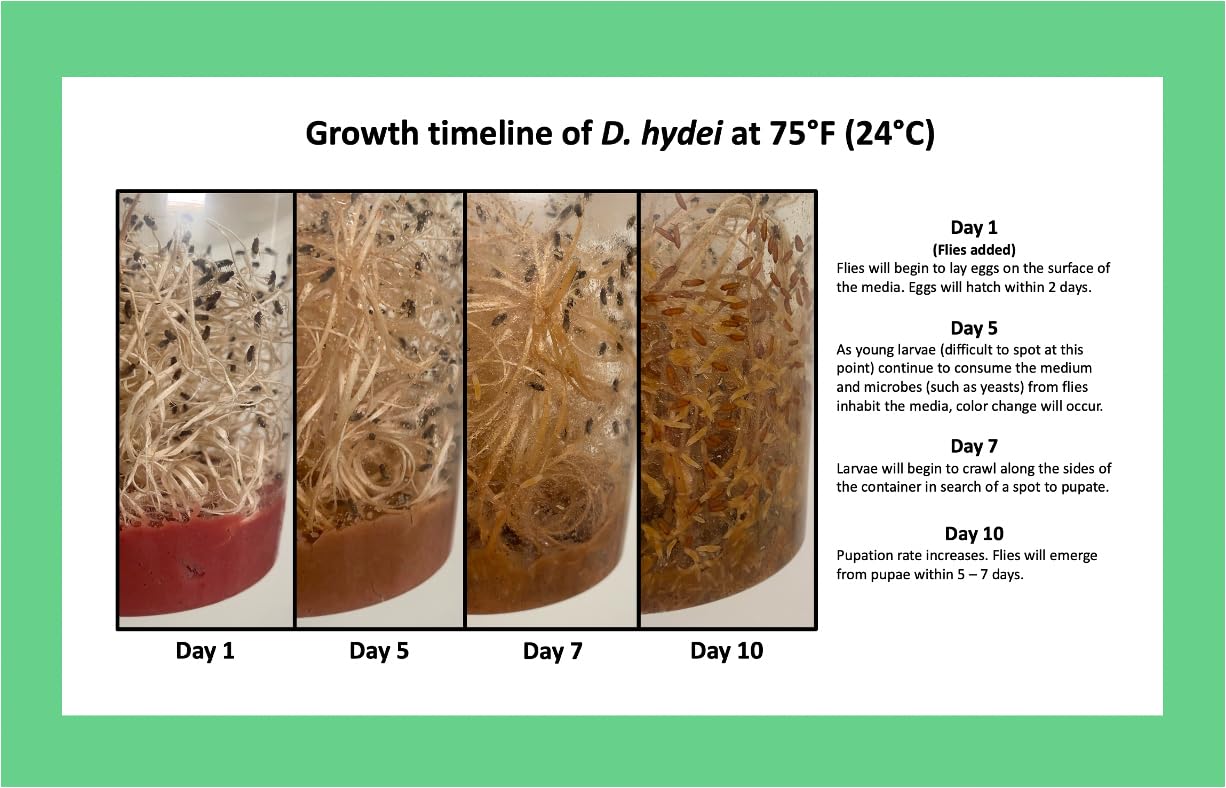 Culture will produce thousands of flies within 3-4 weeks (if maintained at room temperature).