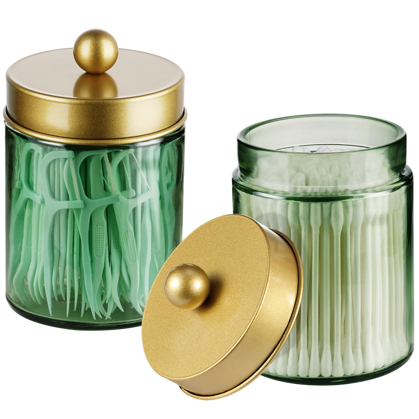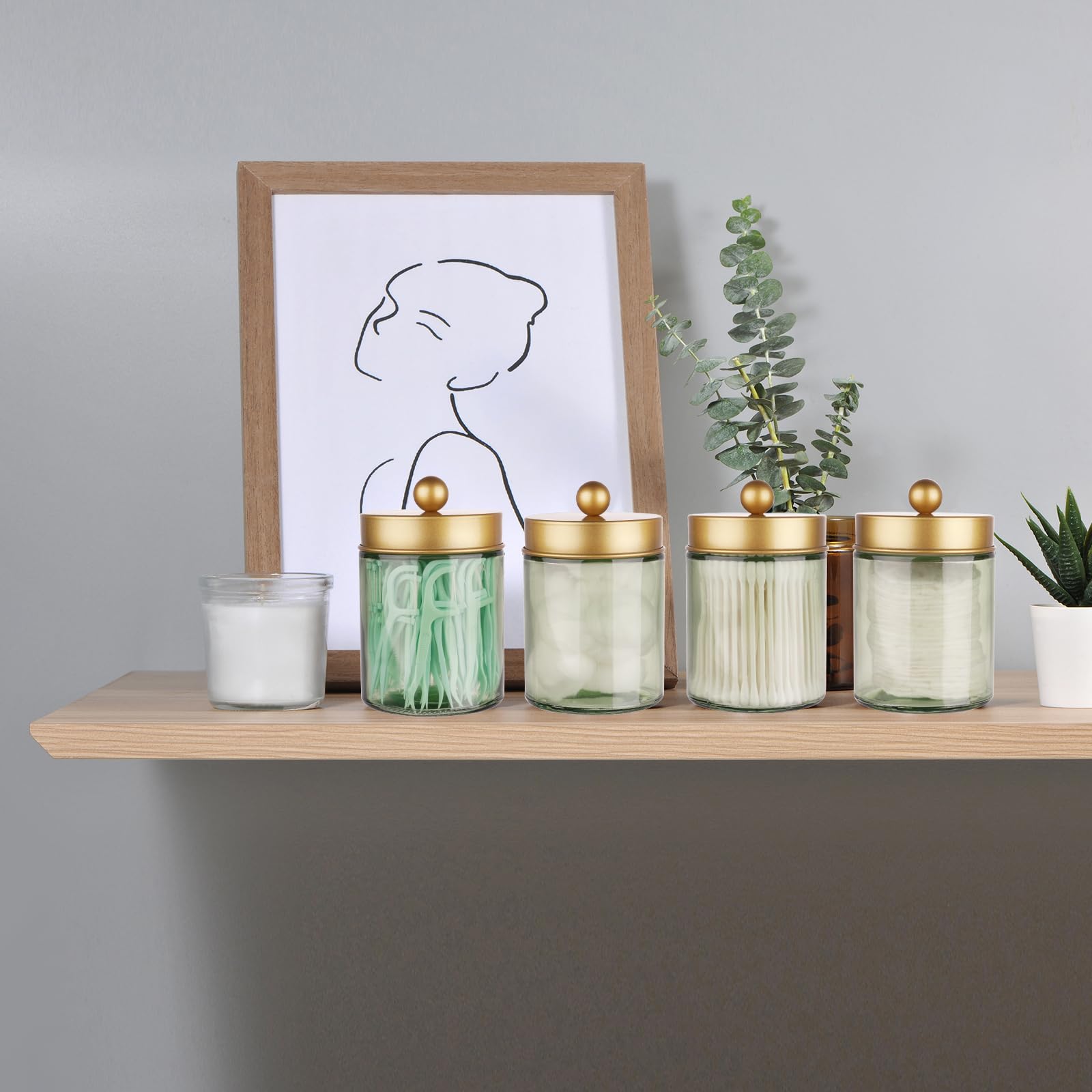 ❤️ Cute Farmhouse Decor- The apothecary jar set will be a fun and beautiful addition to your powder room, bathroom vanity, makeup table and more;This canister is great for storing and organizing cotton swabs, cosmetic sponges, wedges, bath bombs, balls, salts;Organize your hair accessories, clips, elastic bands, bobby pins, bows and more; Use in home office for paperclips, rubber bands, binder clips, and stamps.