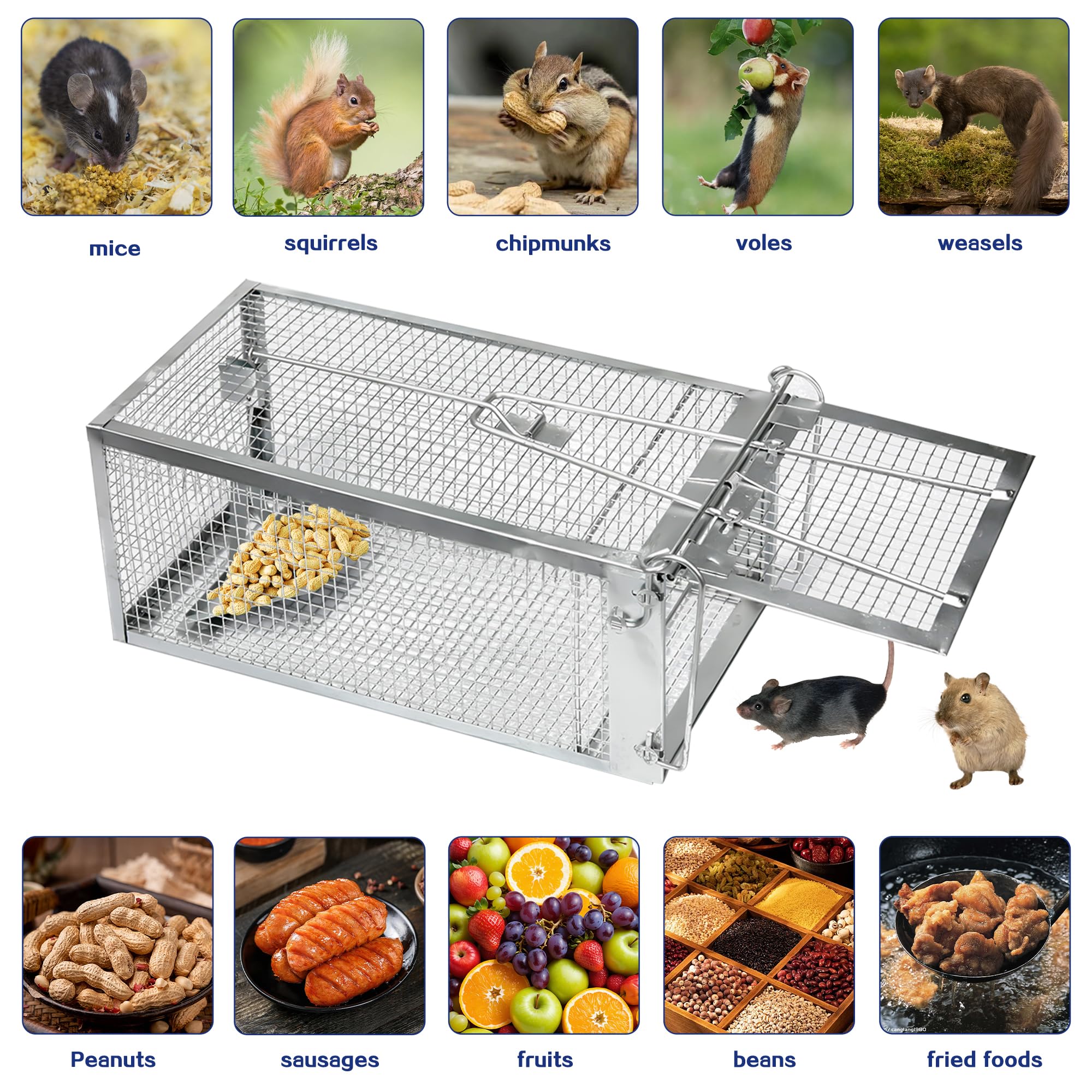 Durable & Reusable Construction: Made from high-quality, rust-resistant materials, these humane mouse trap are built to last through multiple uses. Designed for both indoor and outdoor environments, they can withstand varying weather conditions and are easy to clean and reset