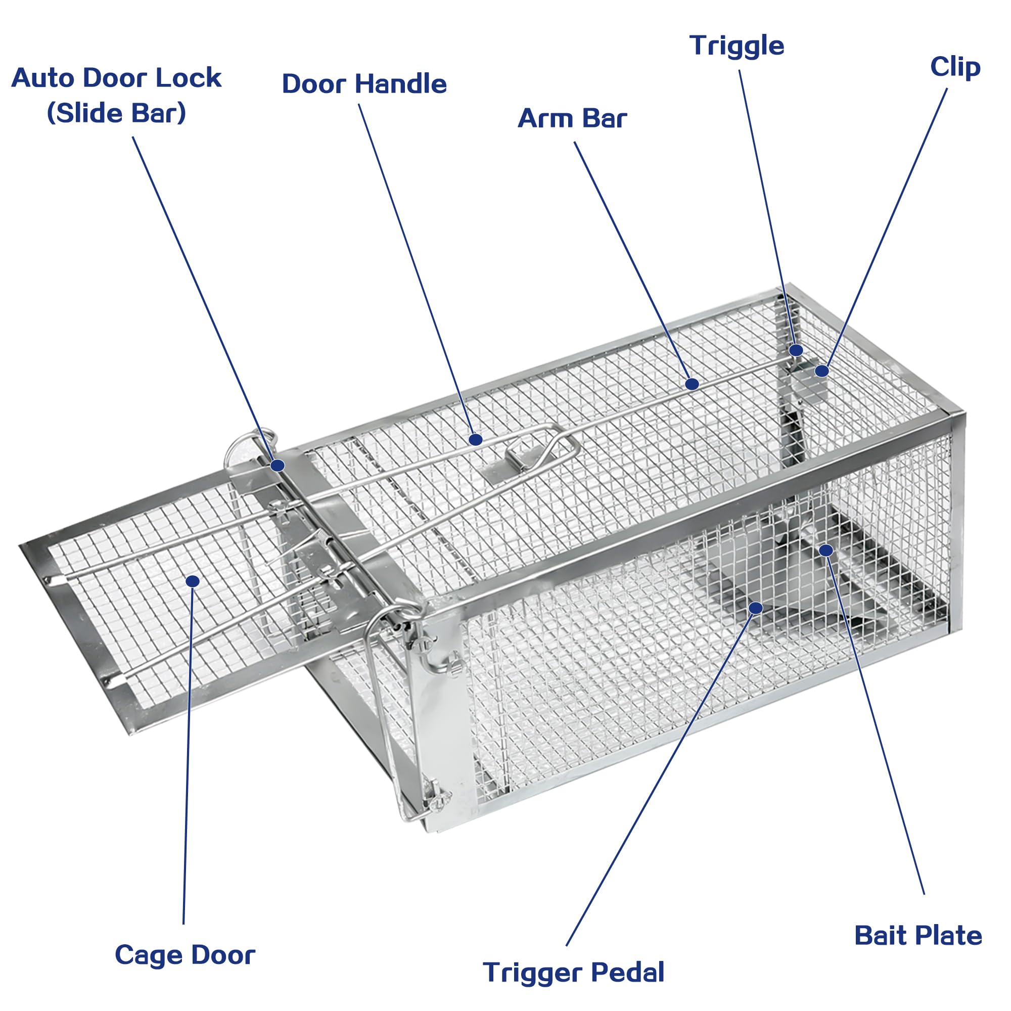 Highly Sensitive Trigger System: Equipped with a sensitive mechanism, the squirrel trap quickly locks the door when rodents enter, ensuring that they are safely contained. The rapid response reduces the chance of escape, making the trap efficient and reliable