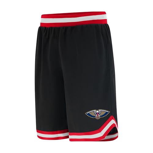 FUNCTIONAL AND STYLISH DESIGN: A black body creates bold color contrasts with NBA team logos. Functional additions include two side pockets and a loose fit for unrestricted movement.