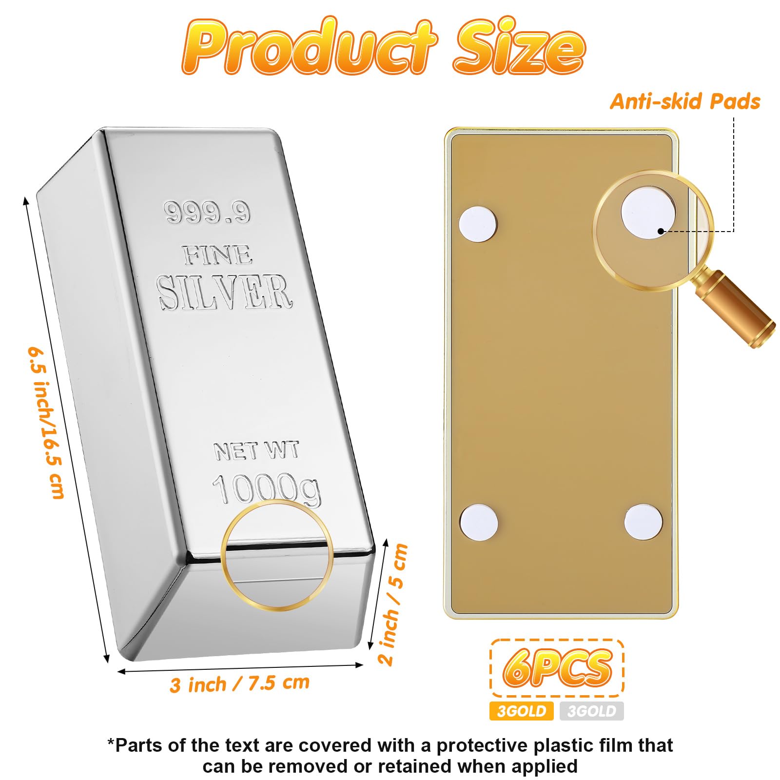 Sufficient Quantity: a total of 6 pieces of fake gold and silver bullion bars, which are ideal and cool decorations at Halloween parties; Abundant quantity can easily allow you to share with cosplayers