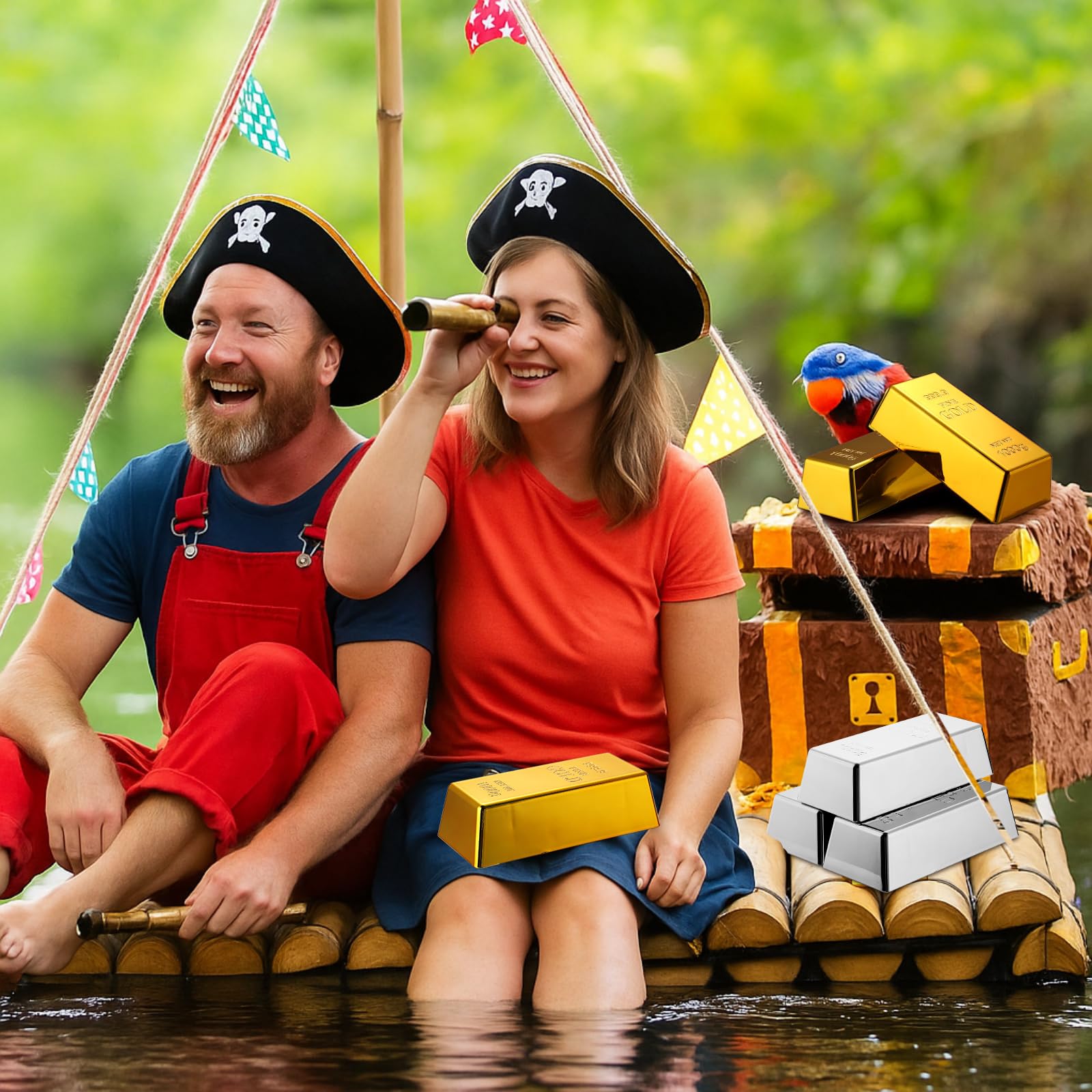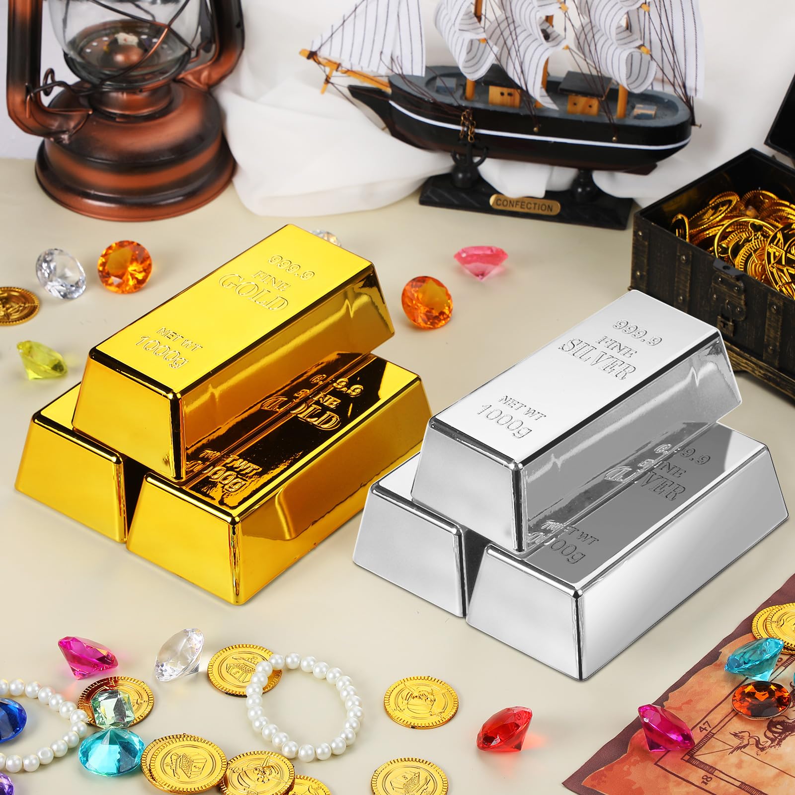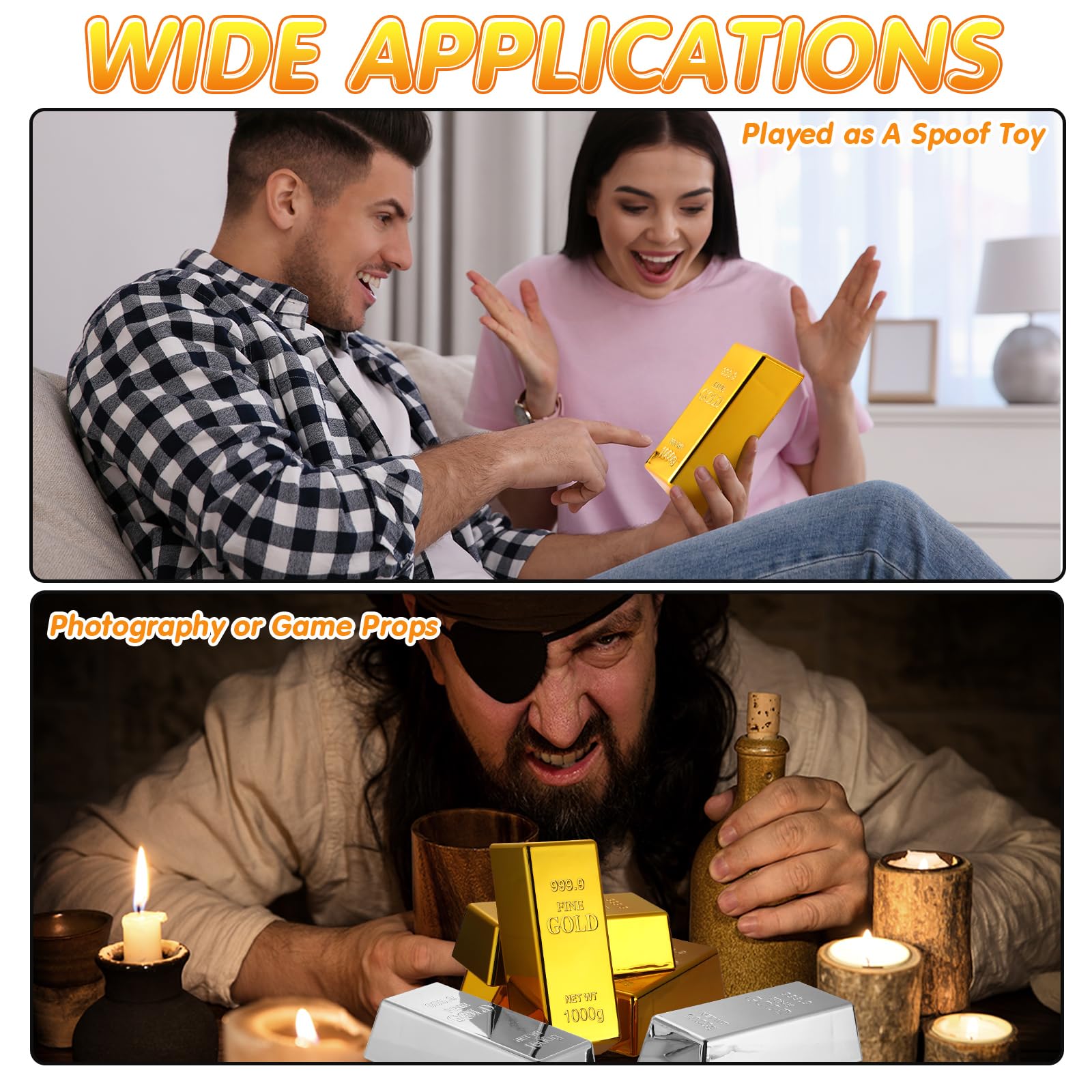Ideal Prop and Gift: the replica golden and silver brick can be applied as a stage performance prop and photo booth prop, also as a decoration for cowboy or pirate theme parties, cosplay and carnivals, also as a nice gift to your guests, or play it as a spoof toy