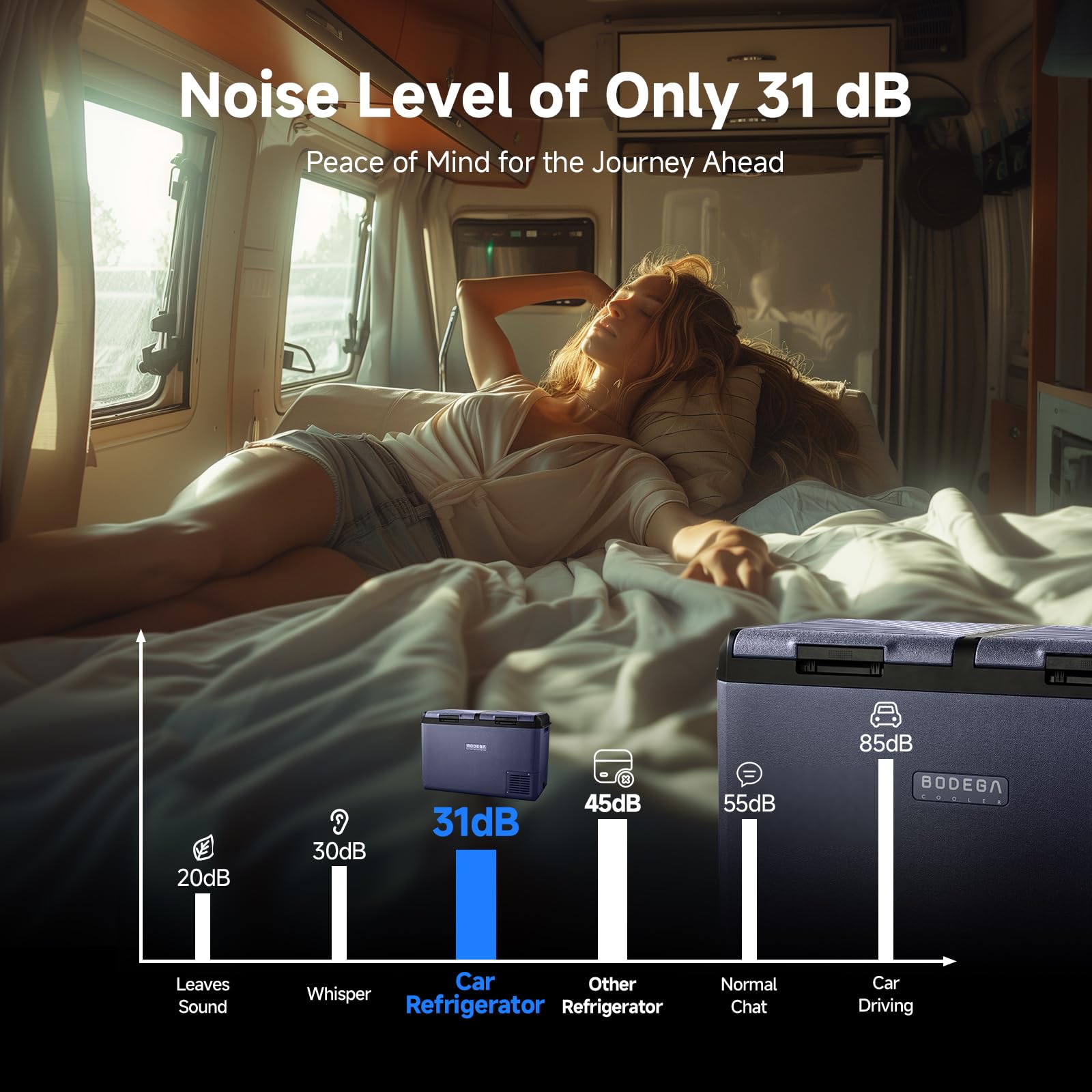 【FAST COOLING & ENERGY EFFICIENCY】BODEGACOOLER 12 volt refrigerator features an advanced variable frequency compressor,Cold cutting time is 22% faster than other products . featuring an ECO mode for energy savings and a MAX mode for rapid cooling, with an average energy consumption of just 60W