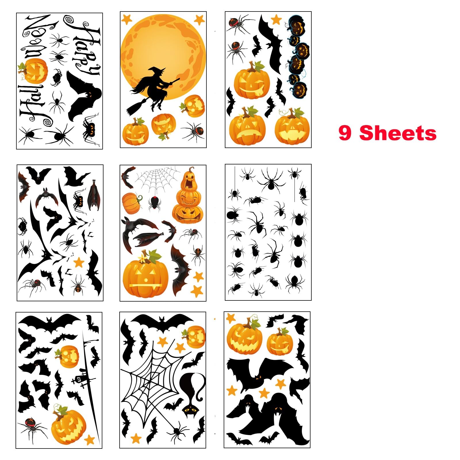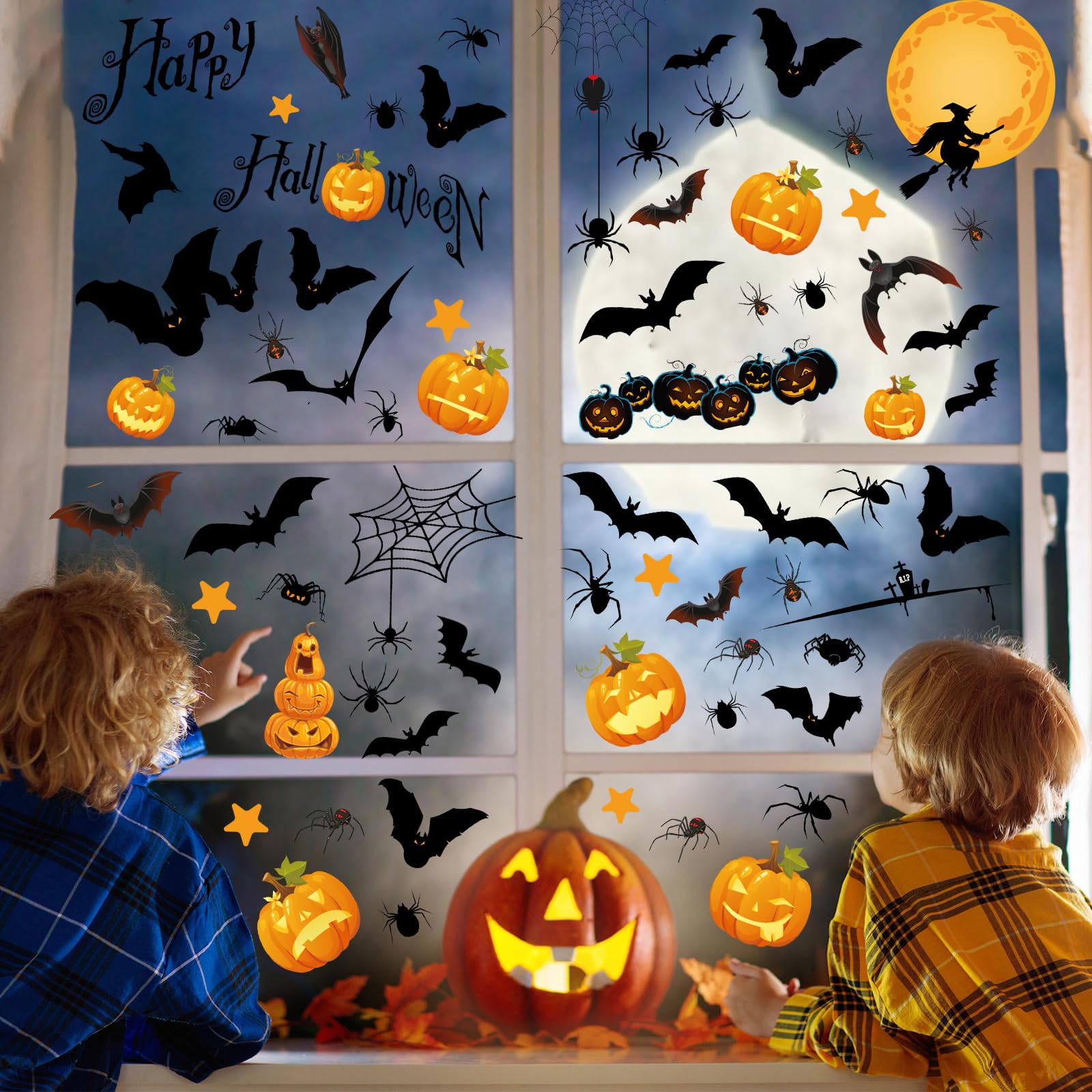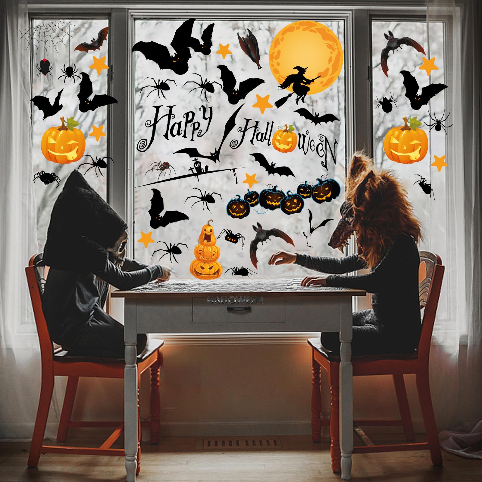 👻Halloween window clings decoration for glass windows include Halloween elements, like pumpkins, spider,bats, they are perfect windows combination for Halloween.It helps add more Halloween atmosphere.