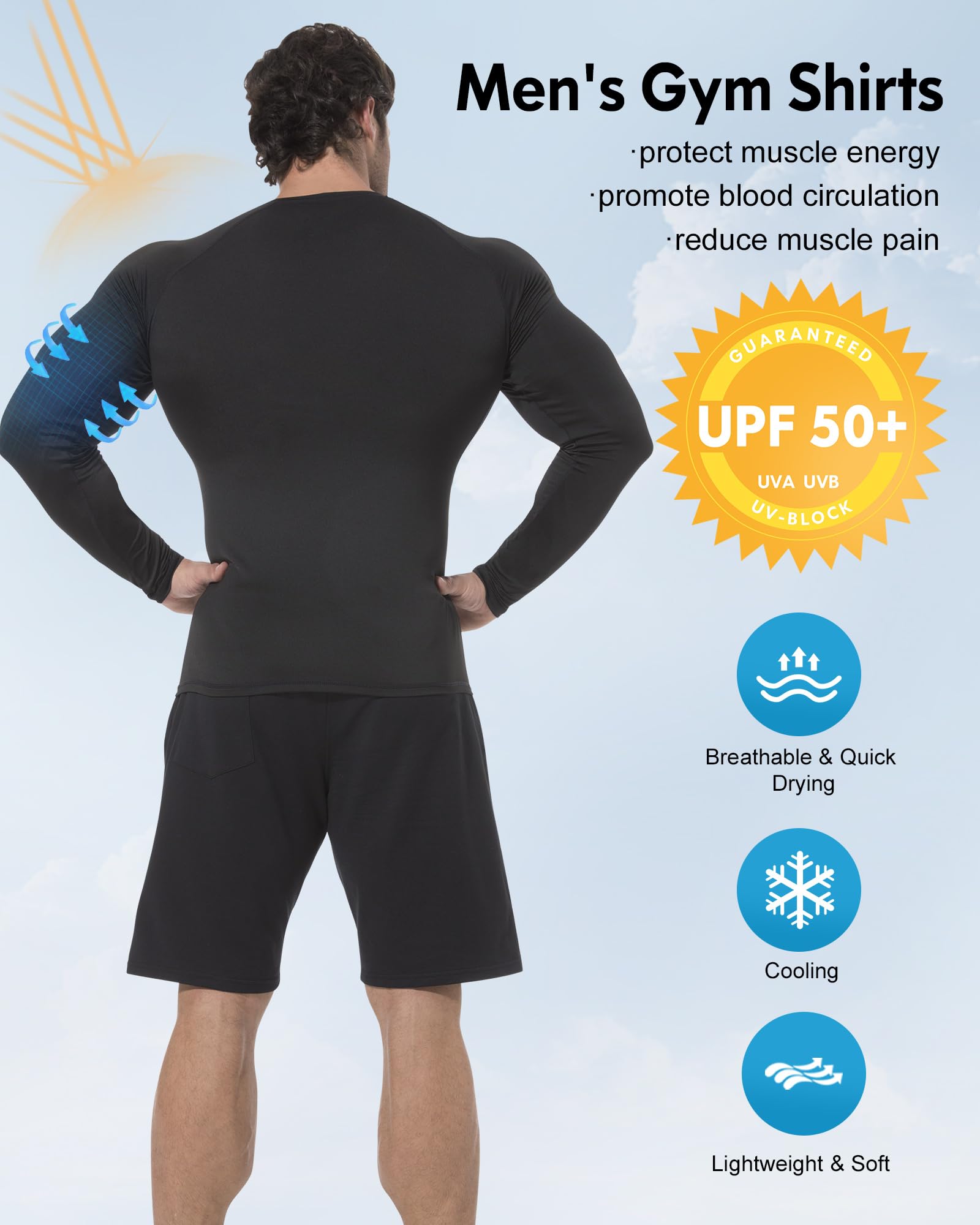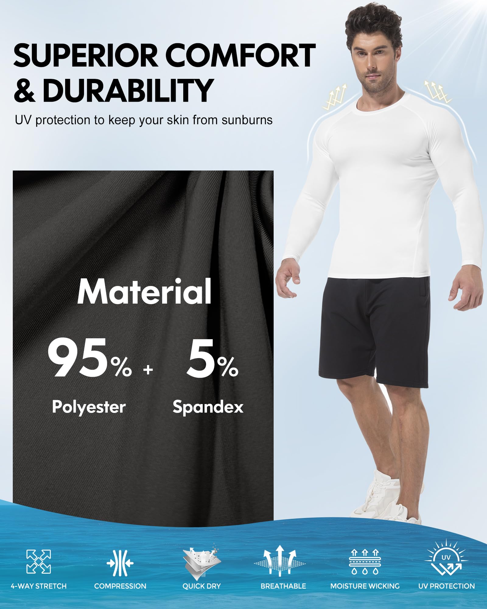 🏋Versatile Athletic Wear: Ideal for various activities, serving as a reliable base layer for gym workouts, basketball, or running. It also functions effectively as a protective rash guard for outdoor sports, offering dependable performance across training environments.