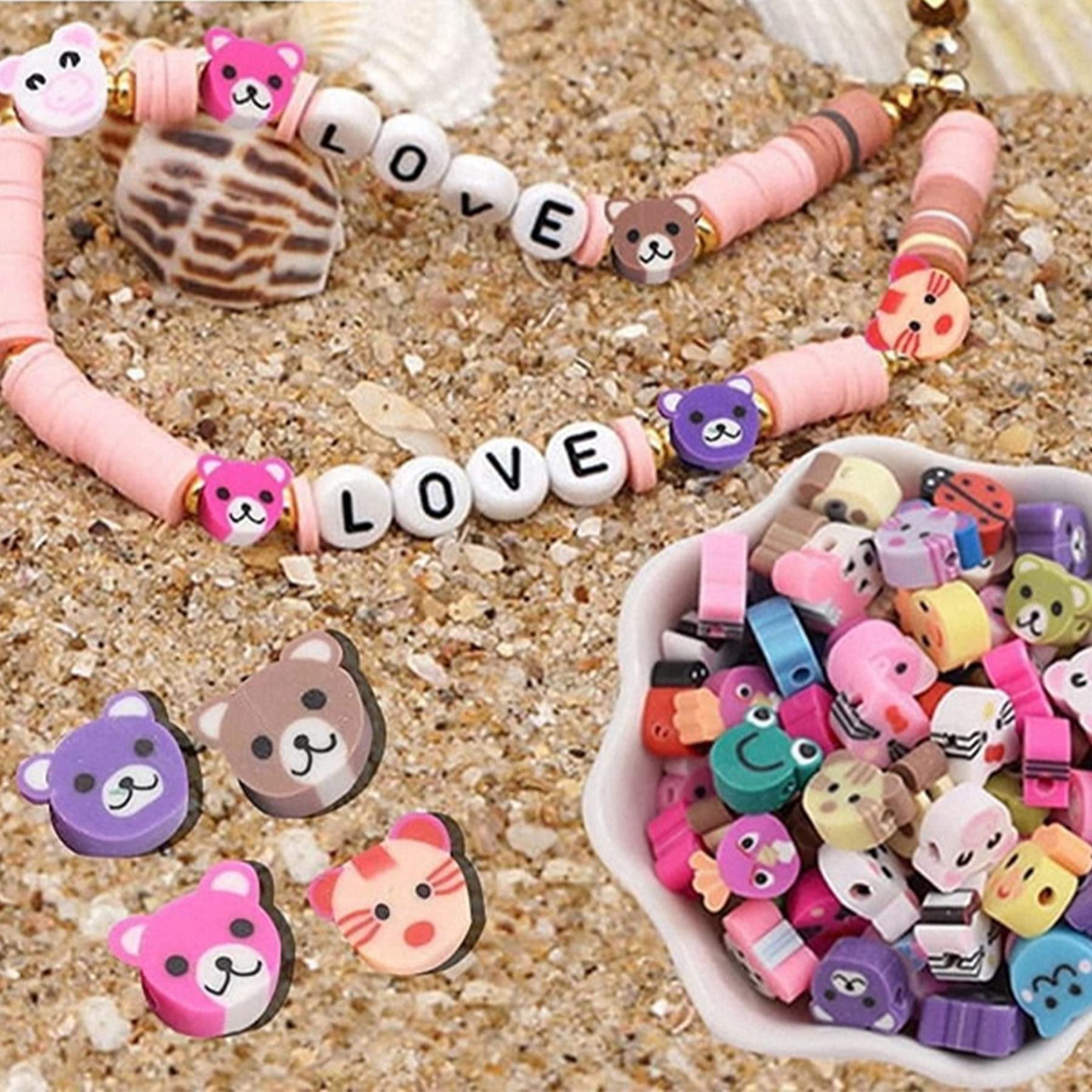 100 Pcs Polymer Clay Beads Cartoon Heishi Spacer Beads Supplies for DIY Bracelet Earring Necklace Jewelry Making (Animal)