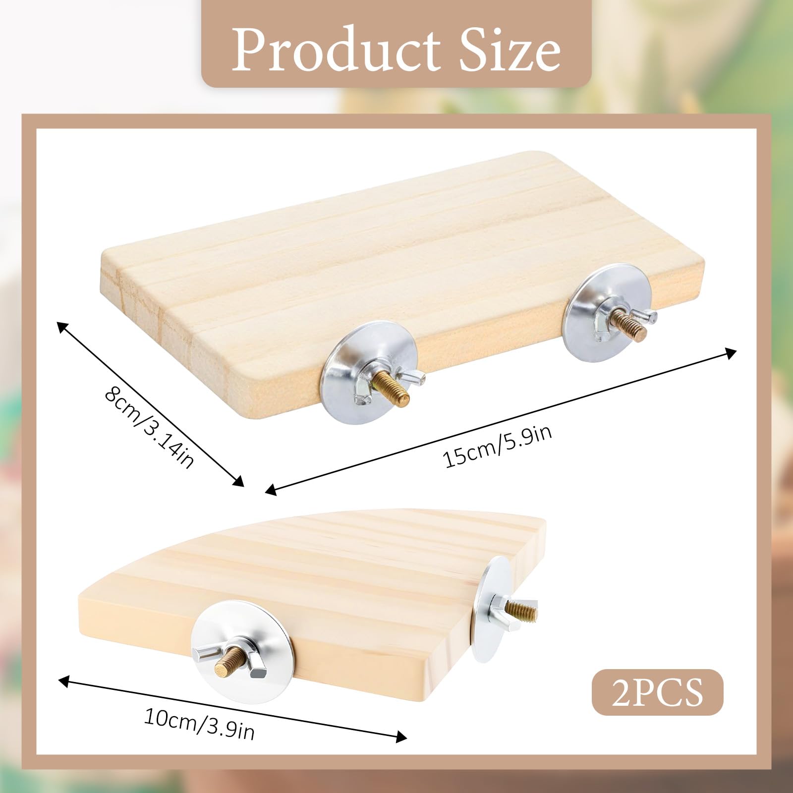 Size: You will receive 2 bird cage platform with a size of approximately the dimensions of the rectangle are 15 x 8 cm; the side length of the sector is 10 cm for birds to stand and play. At the same time, it can also be used as a cage accessory for other small animals