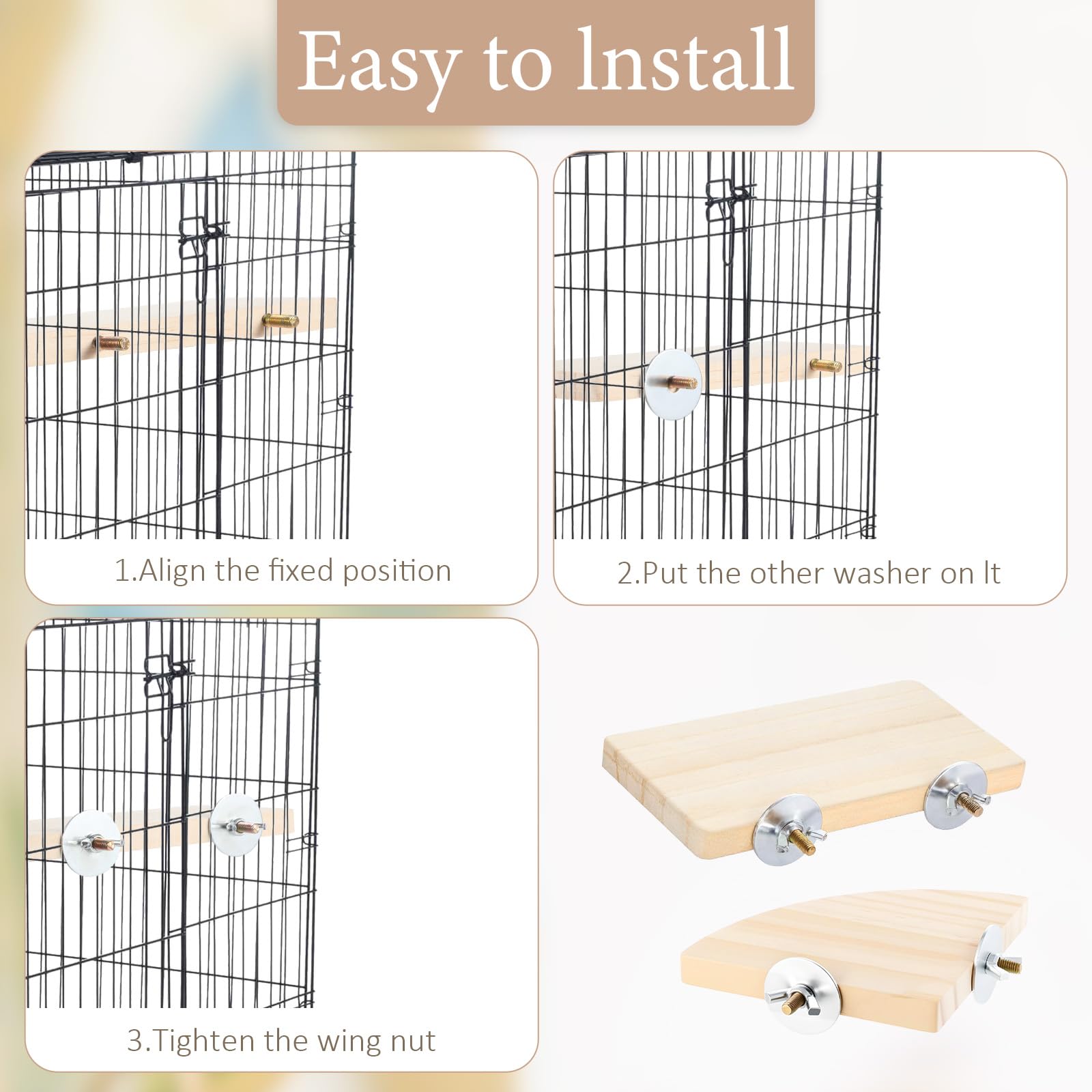 Easy Installation: The bird perch stand is equipped with metal wing nuts and built-in bolts for secure attachment. Simply adjust the perch to the desired position in the bird cage platform and tighten the nuts for a stable setup