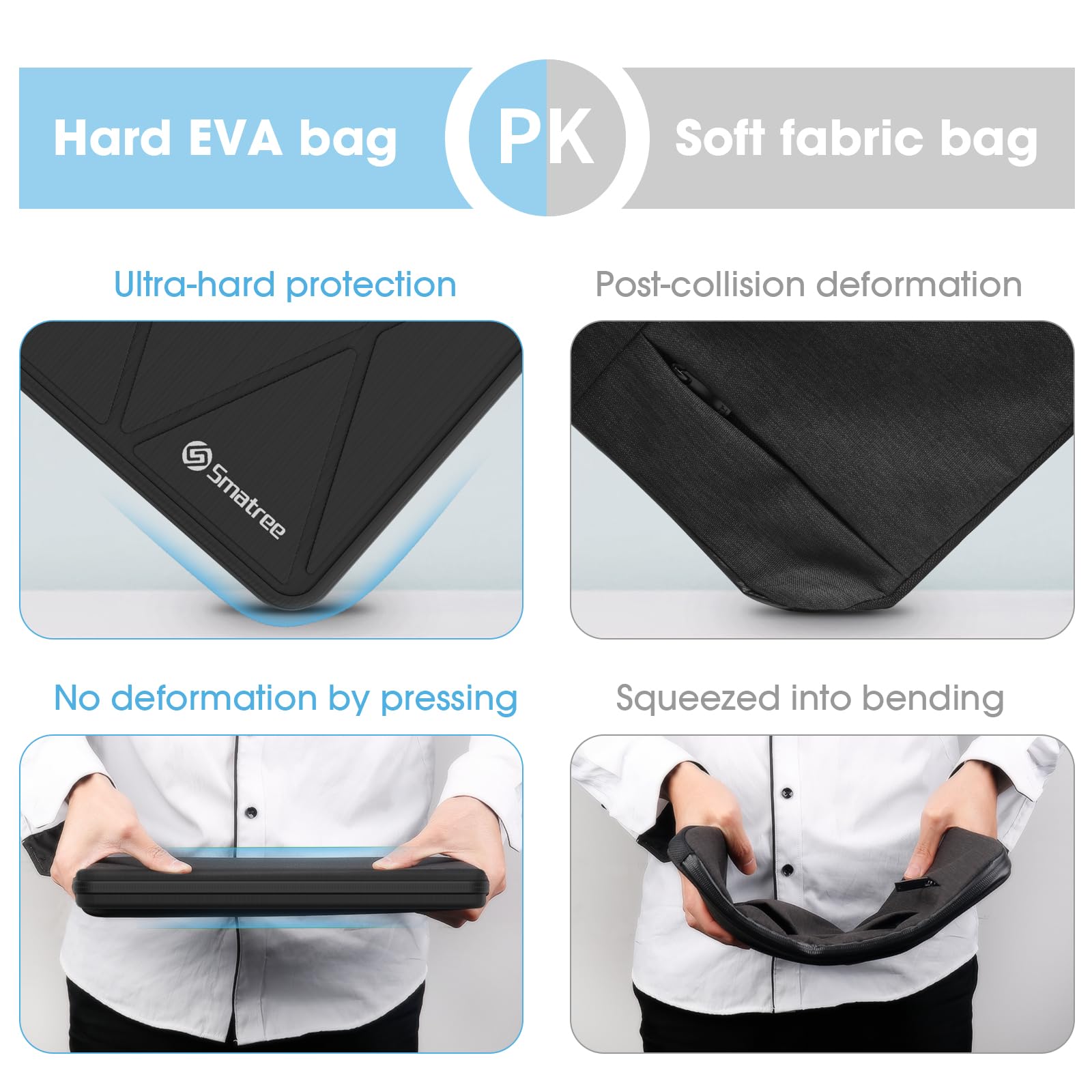 Shockproof Protector: EVA hard shell exterior protects your laptop from external squashing, knocks and bumps. This protective sleeve equips with paddings, provides your Laptop with 360° all around protection without adding any weight