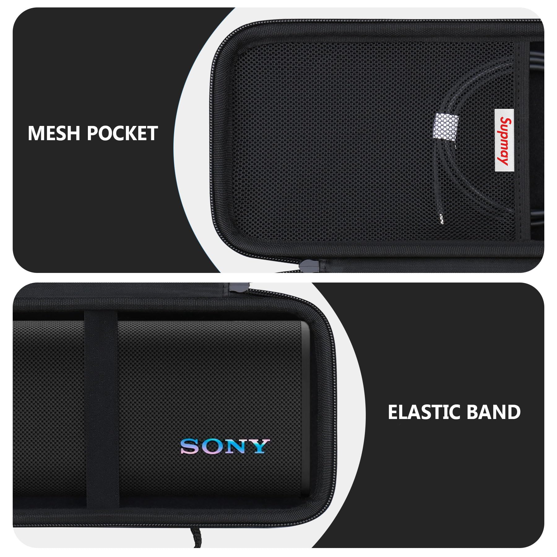UNIQUE DESIGN: The Sony ULT Field 3 Case features a double zipper design that opens and closes freely for easy access to your beloved device. Extra mesh bag for storing shoulder strap, charging cables, instruction manuals other small items. An elastic band keeps your ult field 3 bluetooth wireless portable speaker firmly in place without worry about it sliding and damaging.