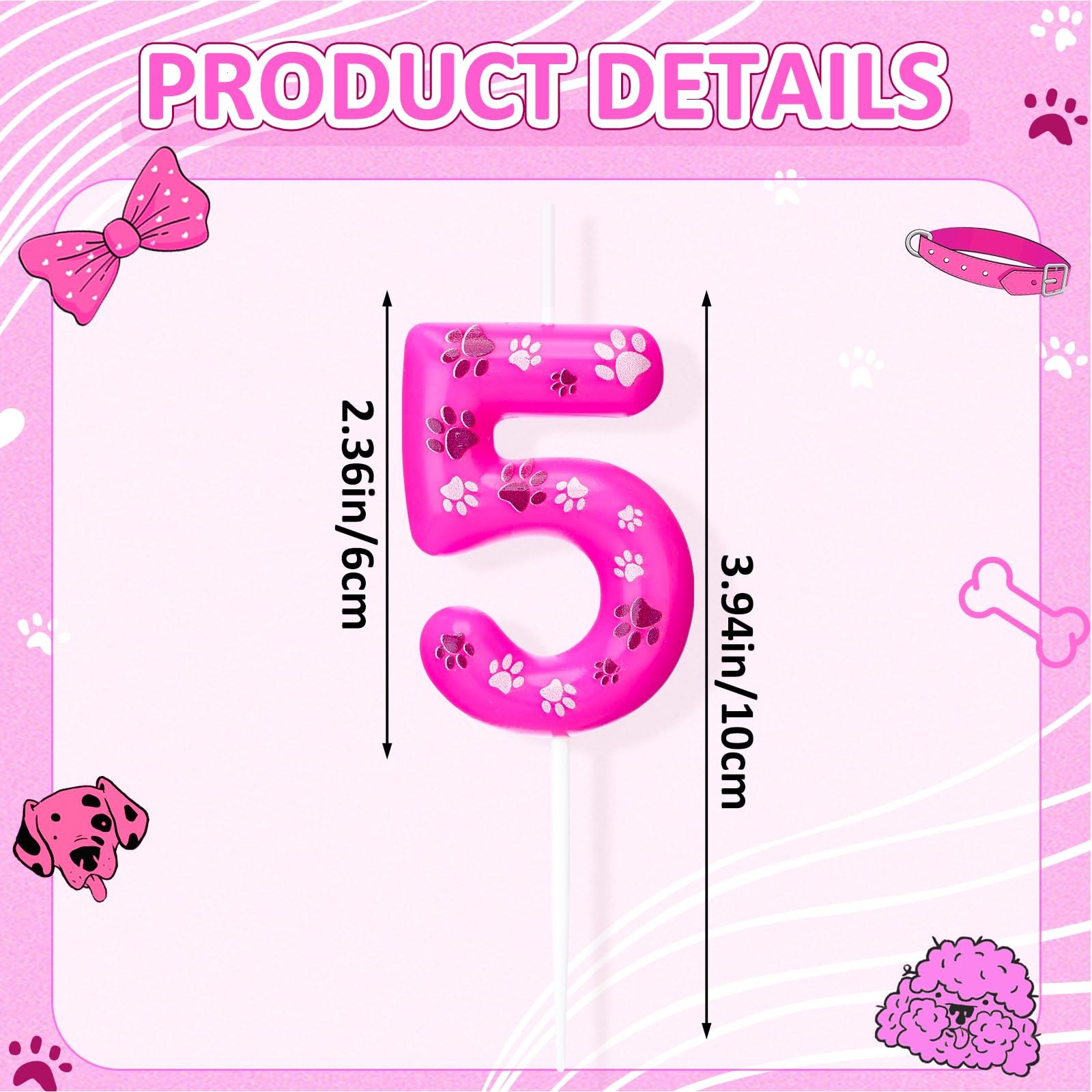 Size Information: each dog paw print birthday candles measures about 2.36 inches/6 cm, with a total candle size of about 4.02 inches/10.2 cm; This birthday cake candle suitable for cakes of all sizes, and allows the candle to stand out without overpowering the cake or dessert it decorates