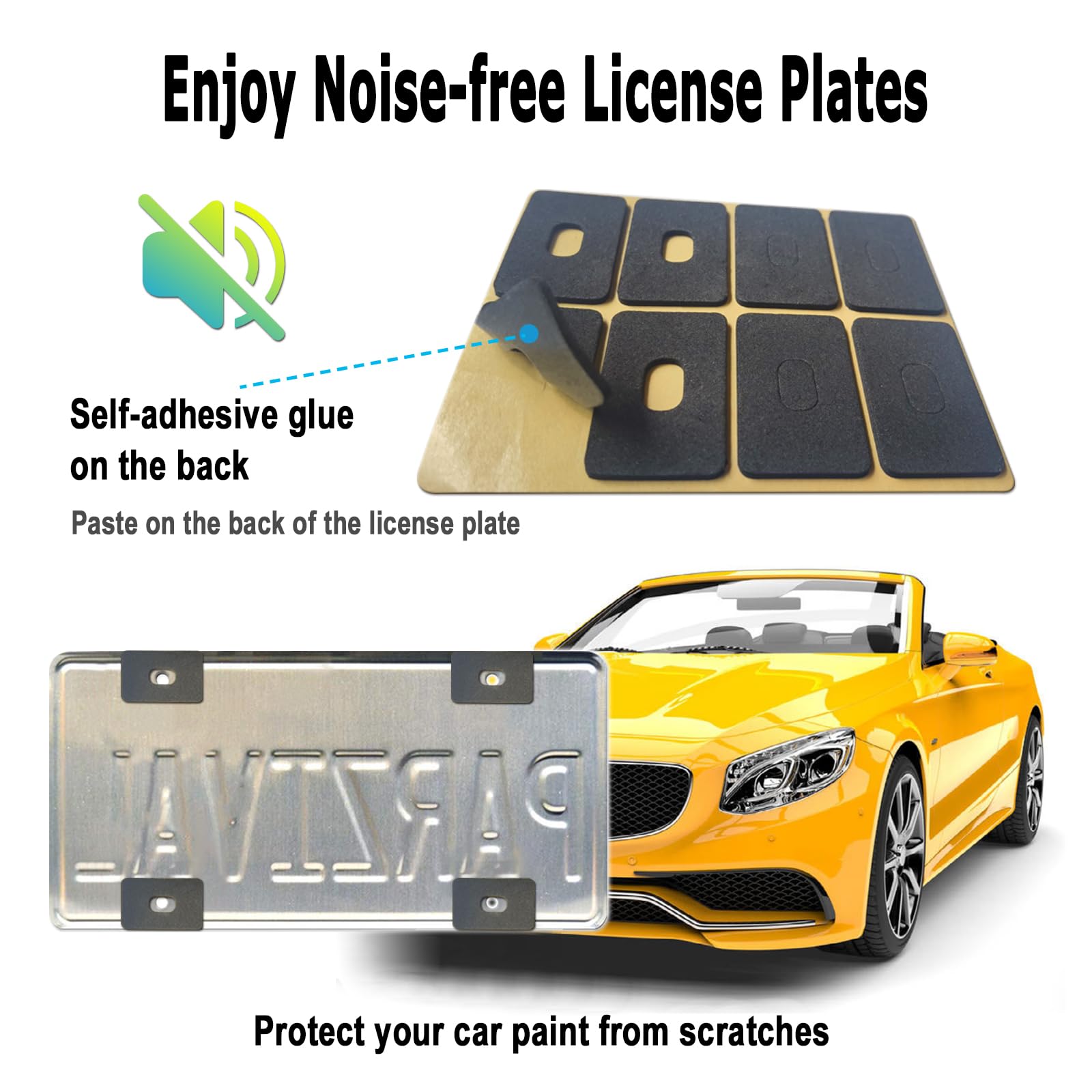 High-Value Car Accessories: The black foam license plate pad can be pasted on the back of the metal license plate to avoid direct contact with the car body, reduce license plate vibration noise, and protect the license plate rattle proof.